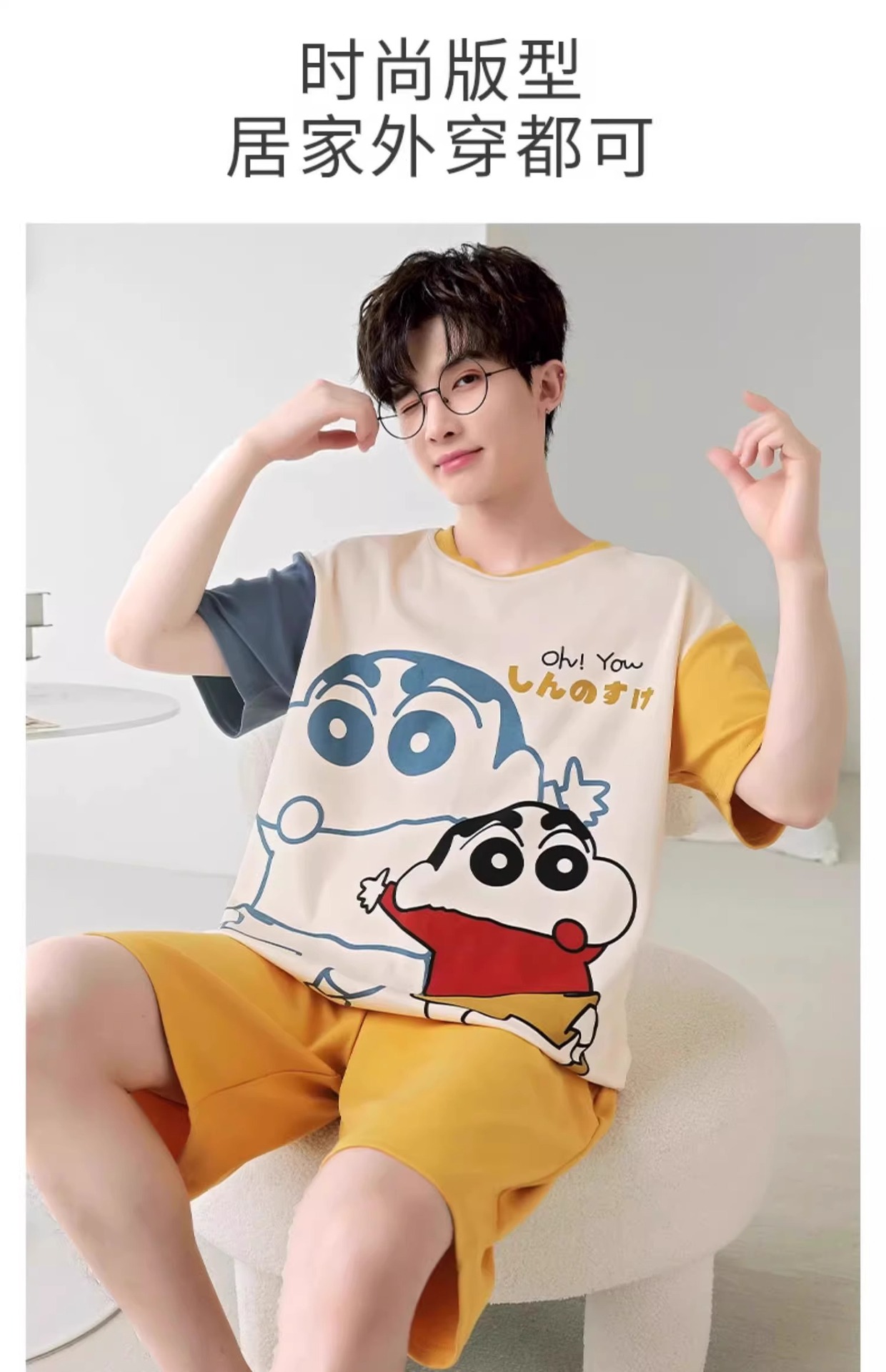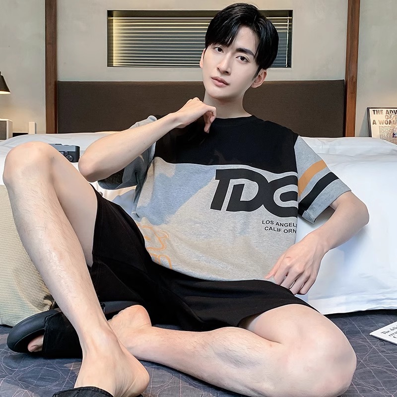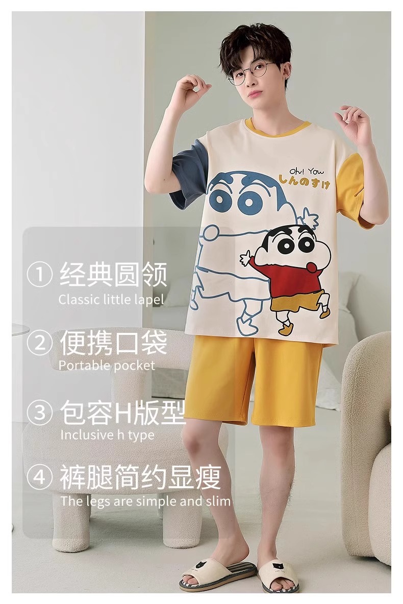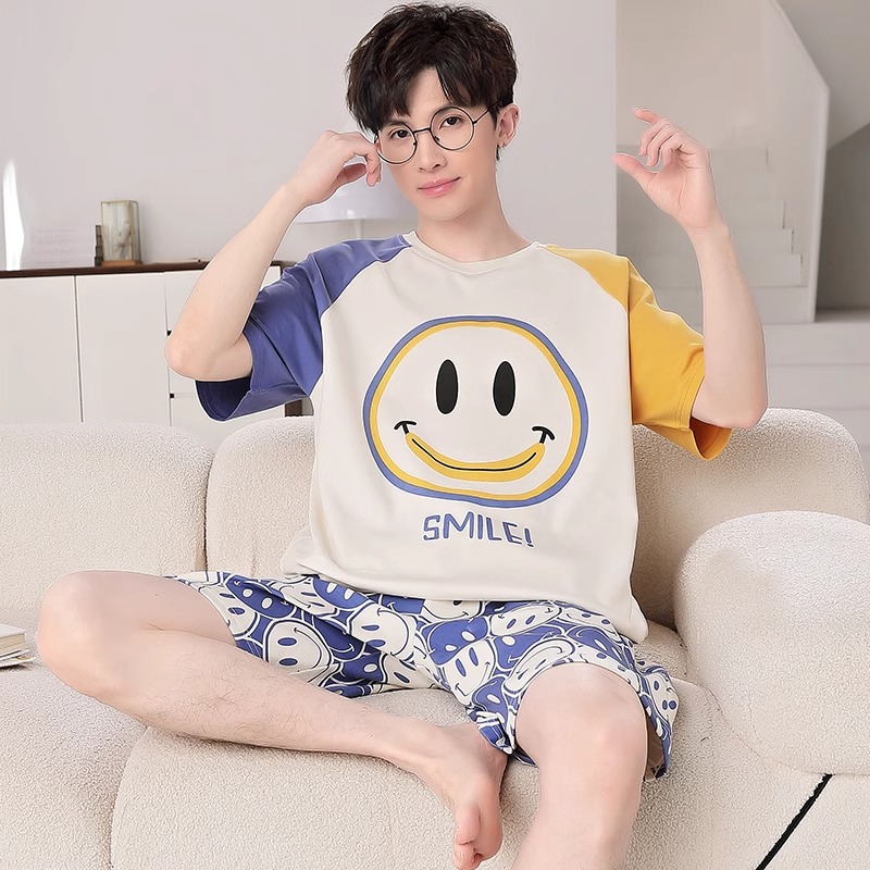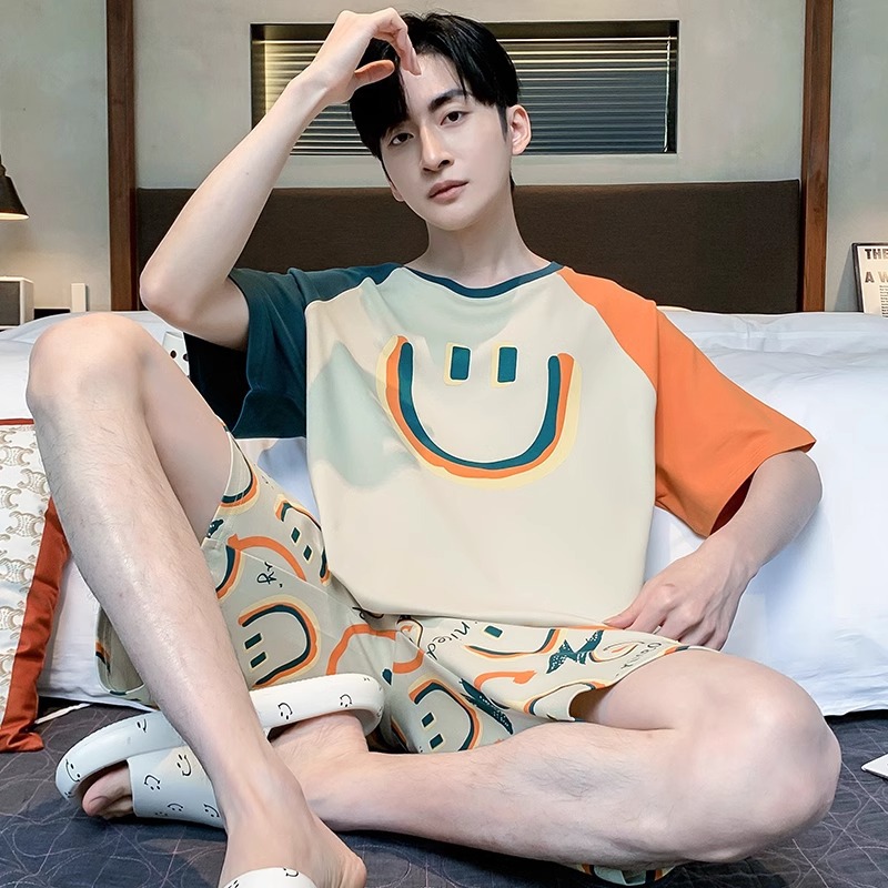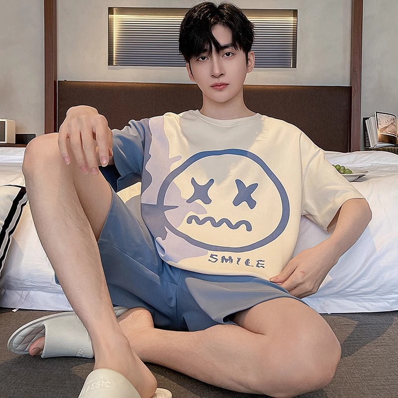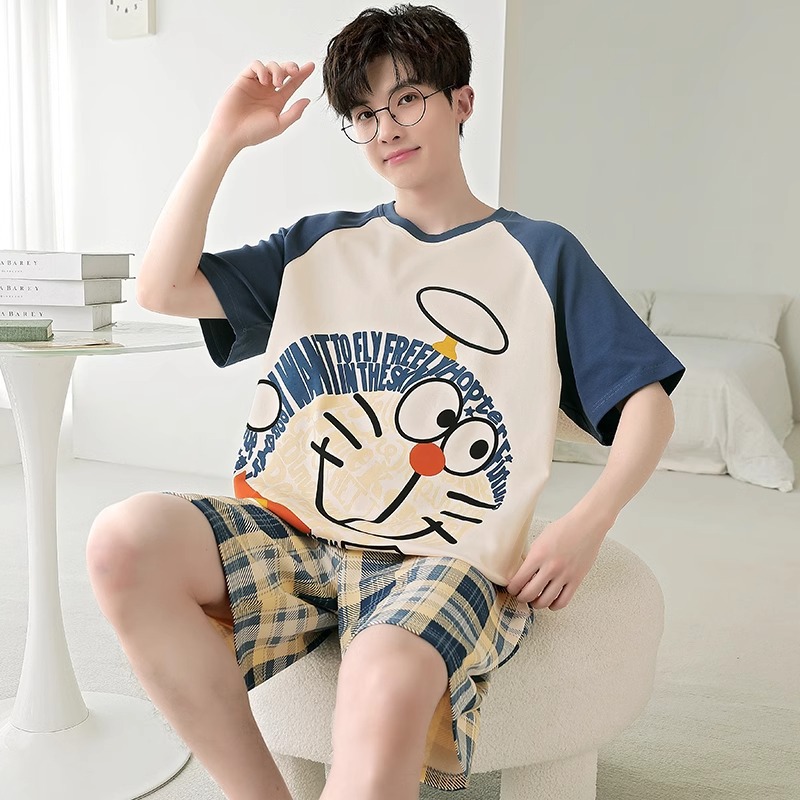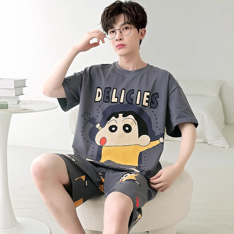 잠옷 남성면 여름 반팔 반바지 학생 만화 악어 플러스 비료 플러스 사이즈 면 홈 의류 세트스토어 가기