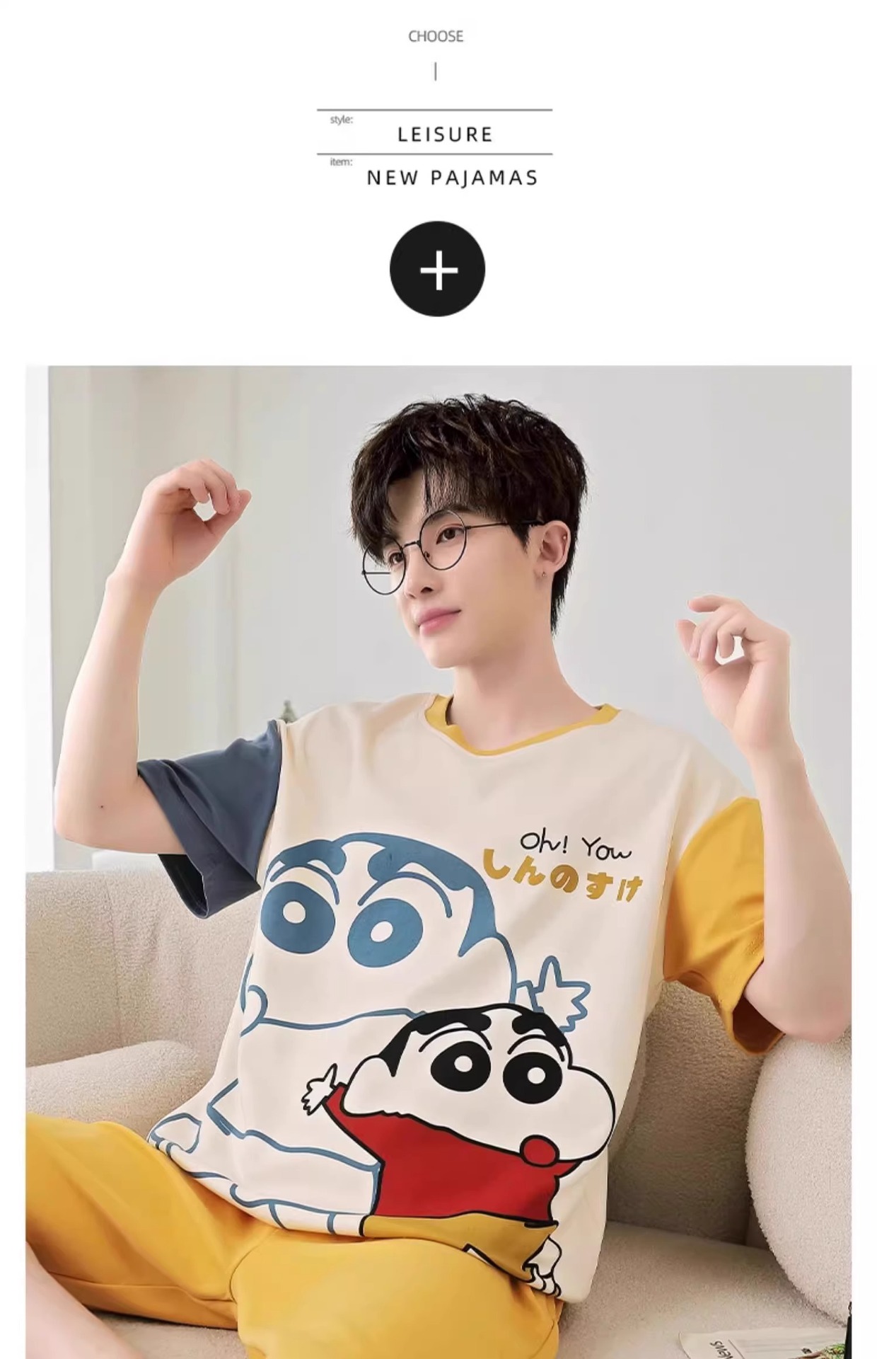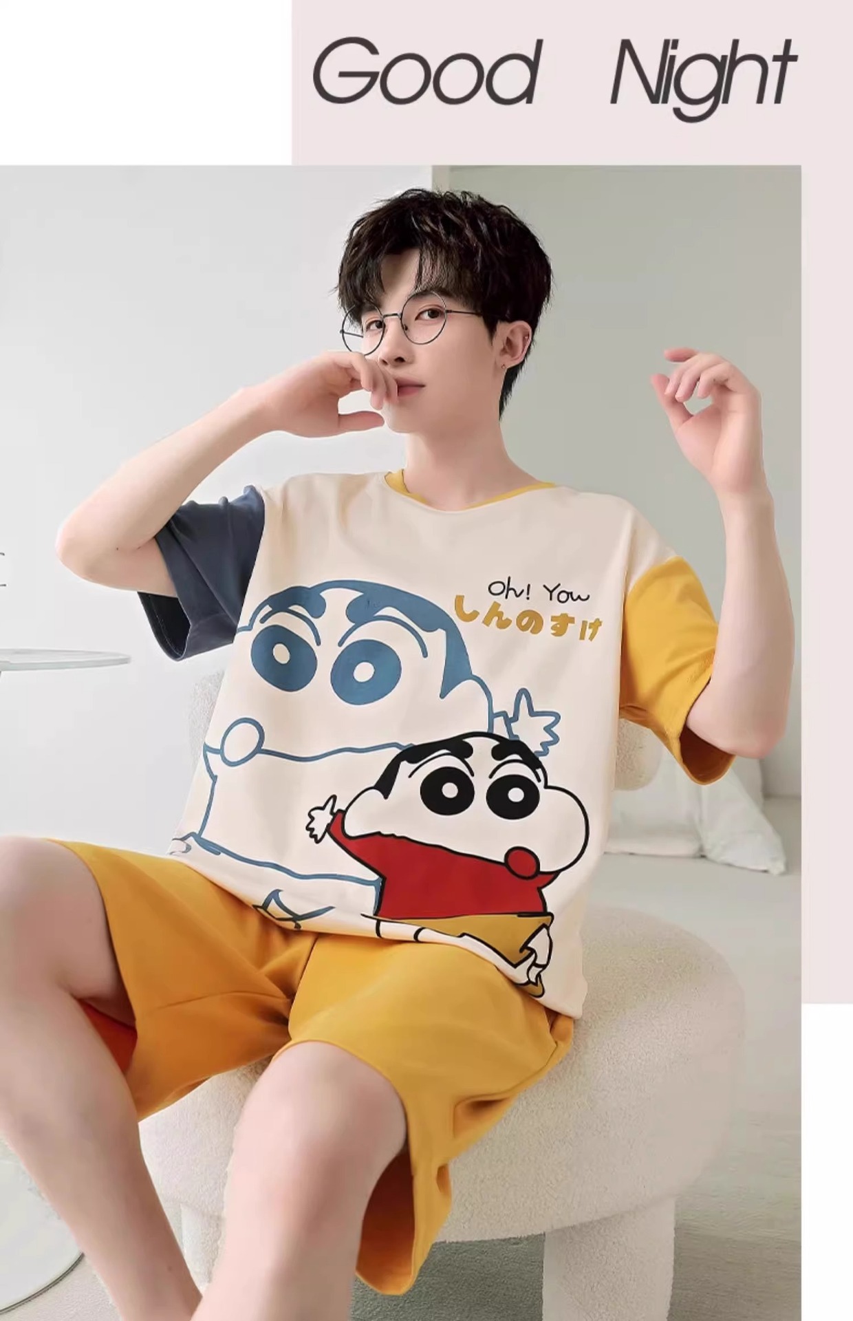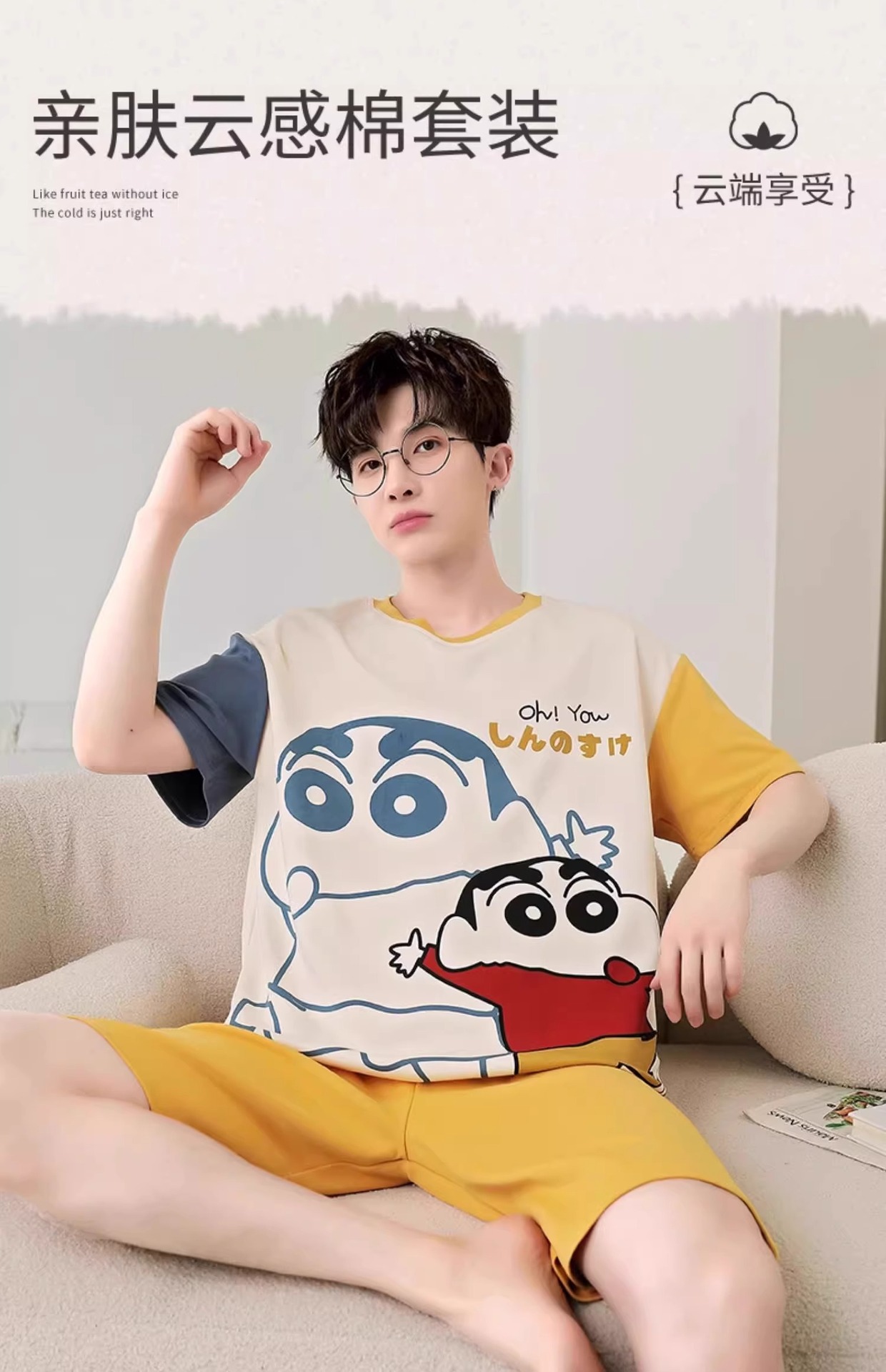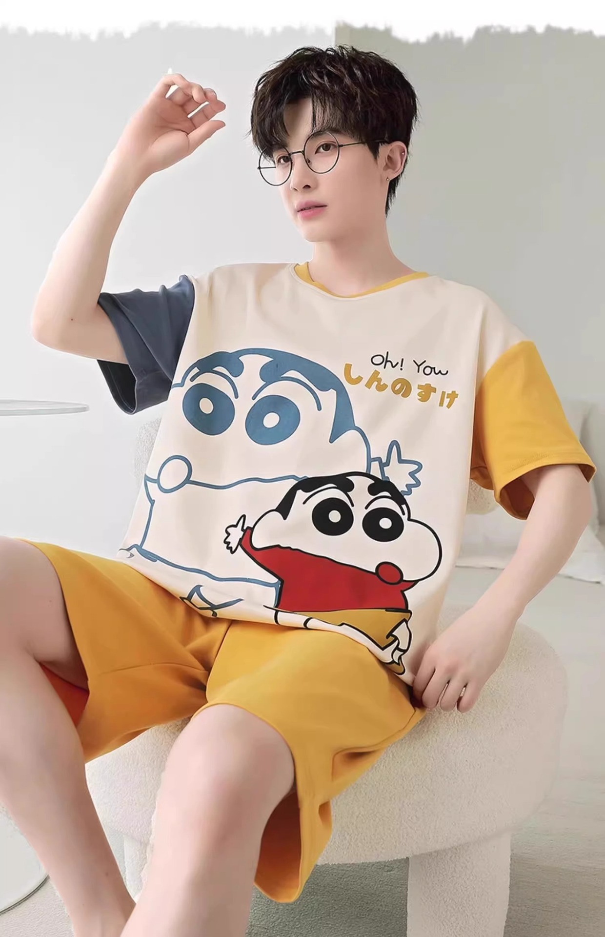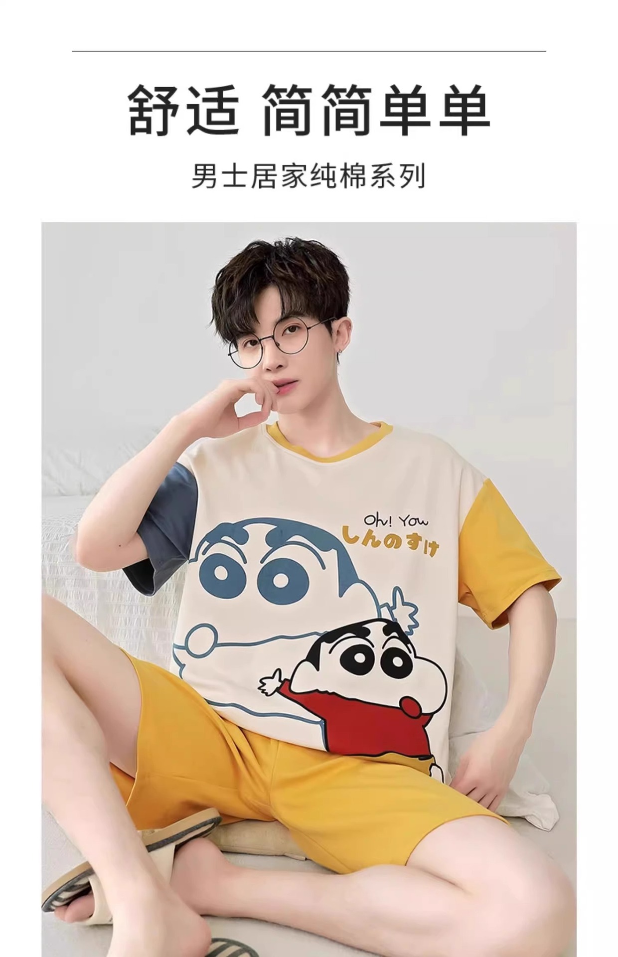 잠옷 남성면 여름 반팔 반바지 학생 만화 악어 플러스 비료 플러스 사이즈 면 홈 의류 세트스토어 가기