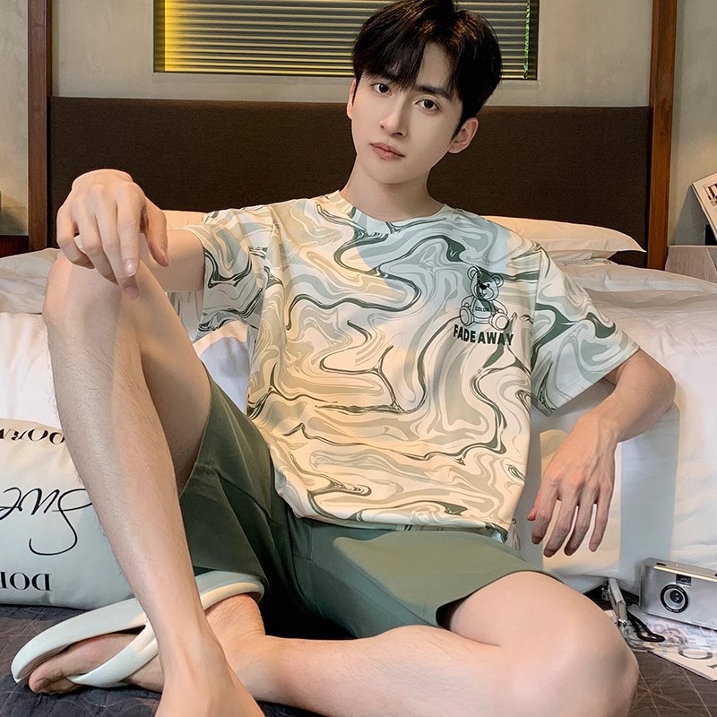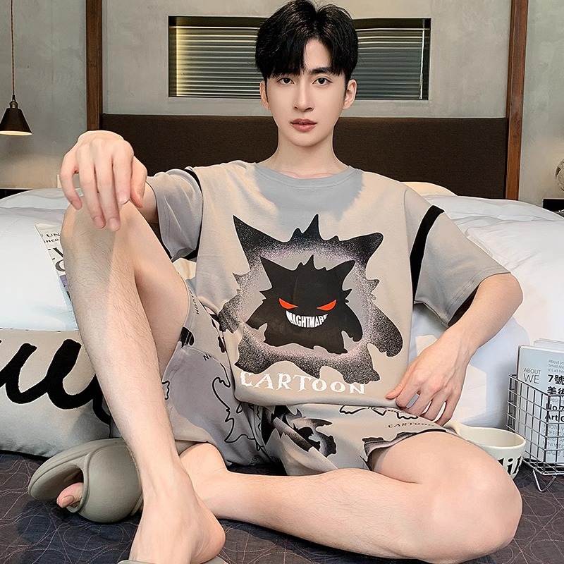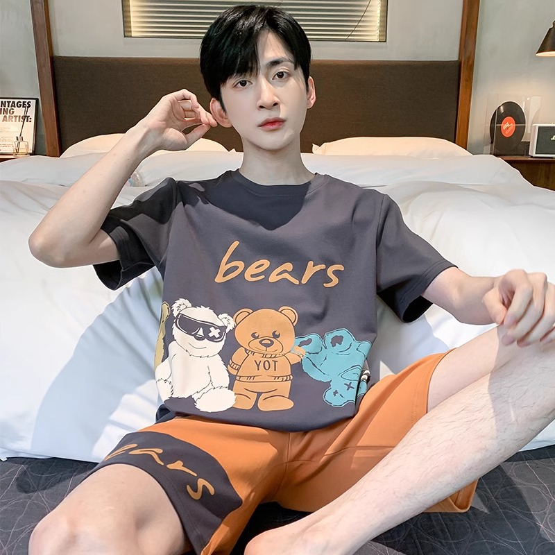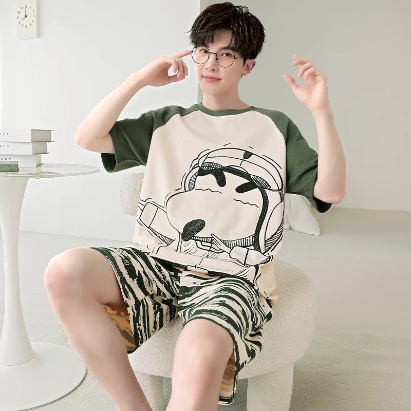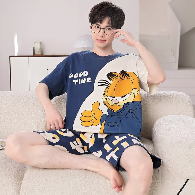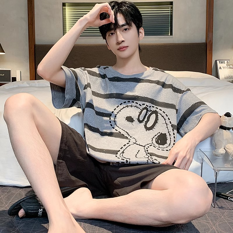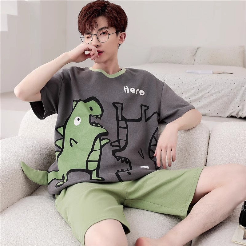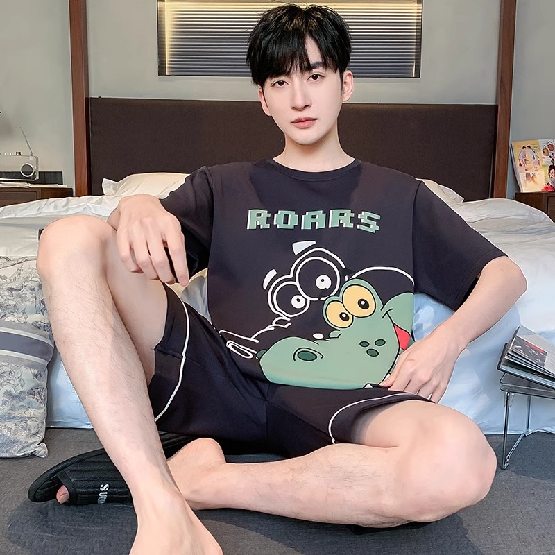잠옷 남성면 여름 반팔 반바지 학생 만화 악어 플러스 비료 플러스 사이즈 면 홈 의류 세트
