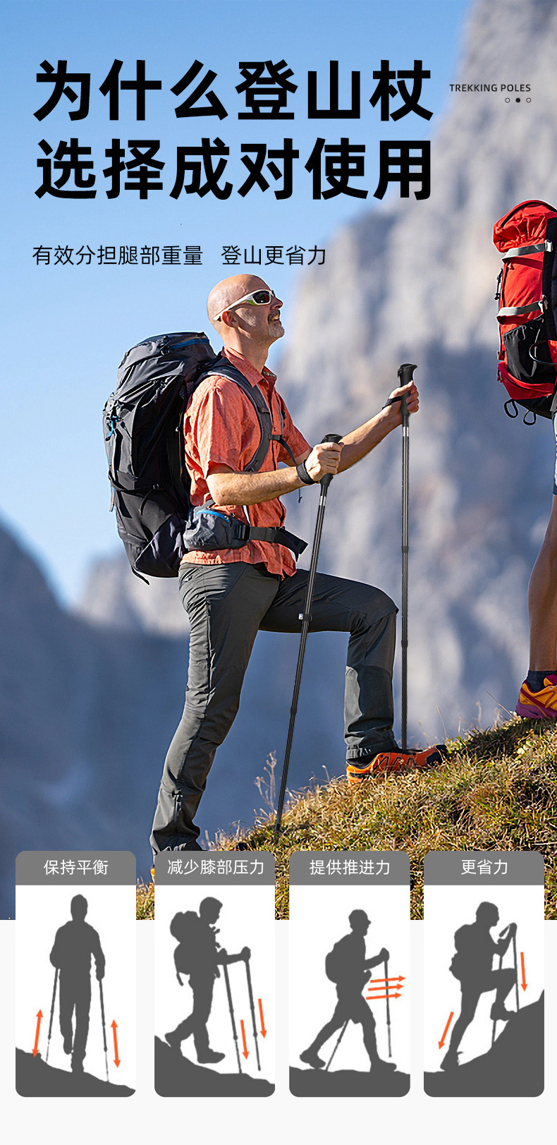 Kuangtu 야외 등산 직원 버클 형 알루미늄 합금 3 섹션 텔레스코픽 워킹 스틱 마운틴 클라이밍 및 하이킹 장비 미끄럼 방지 목발