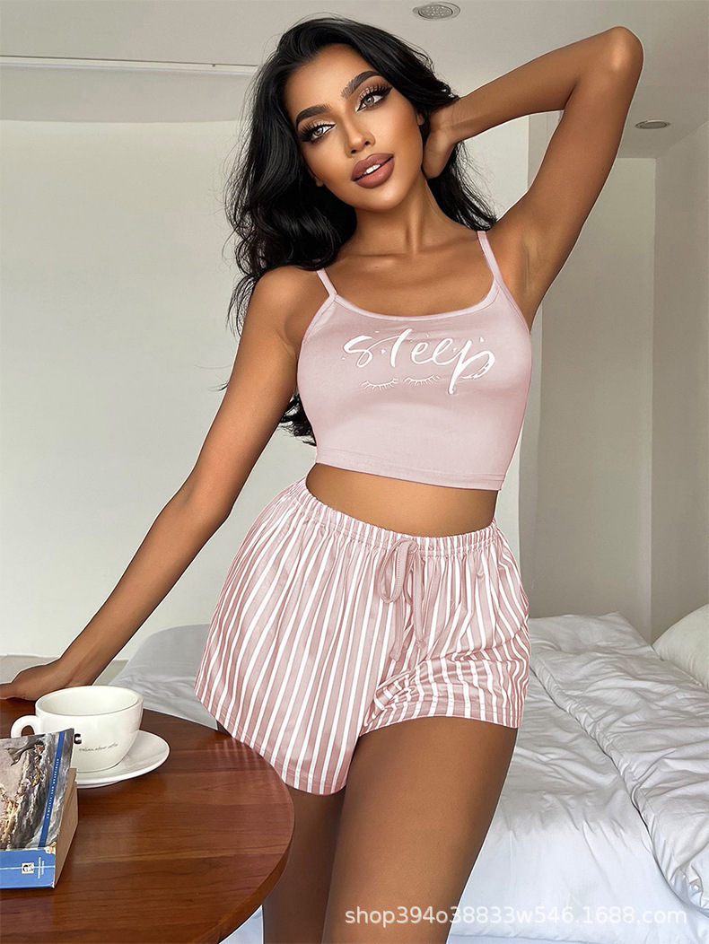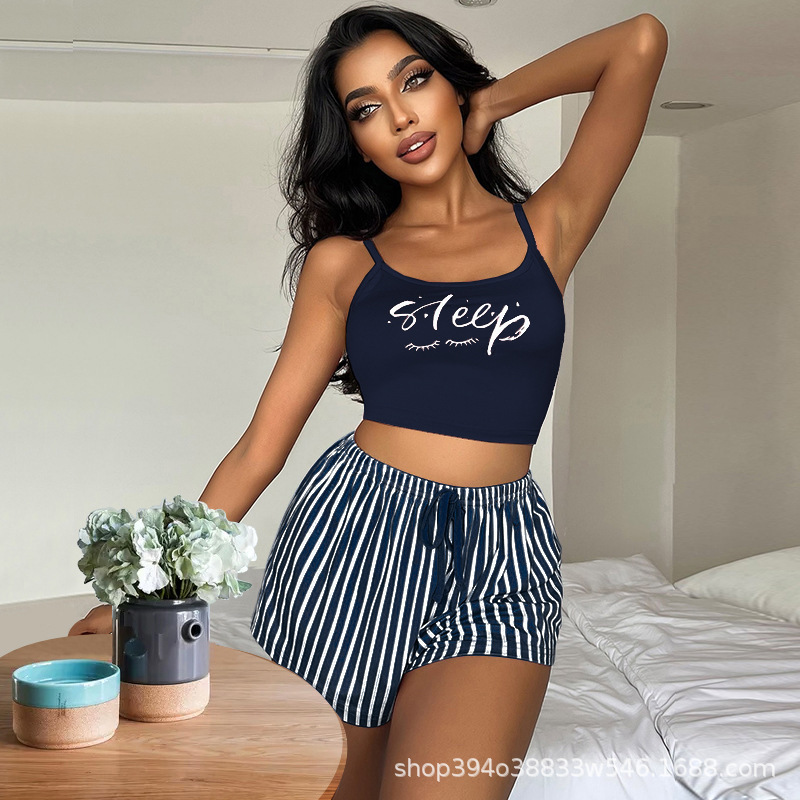 2025 새로운 유럽과 미국의 국경 인쇄 티셔츠 캐주얼 편안한 여성용 섹시한 잠옷 홈 의류 세트 외장 착용