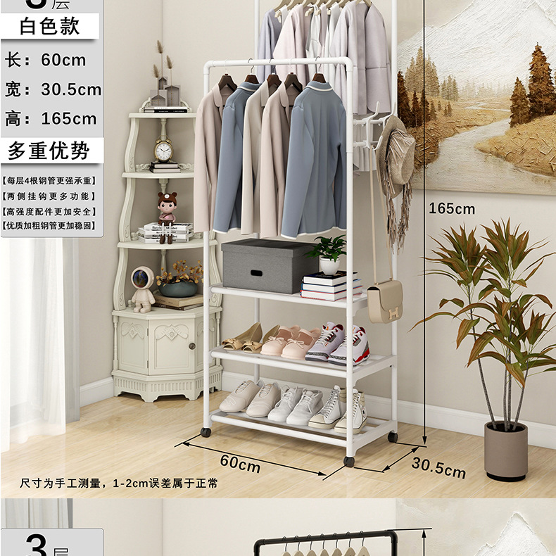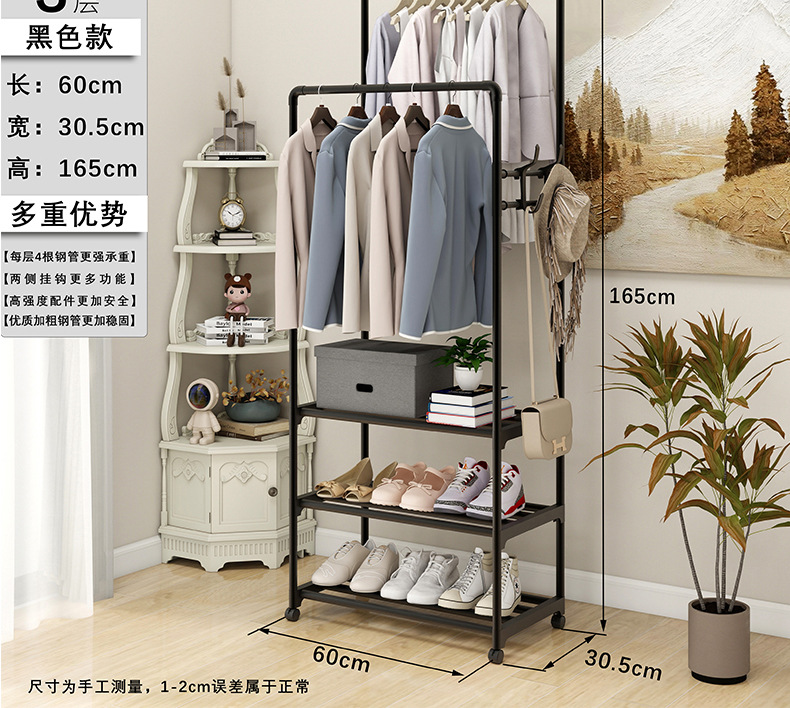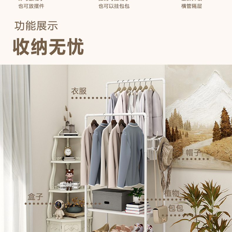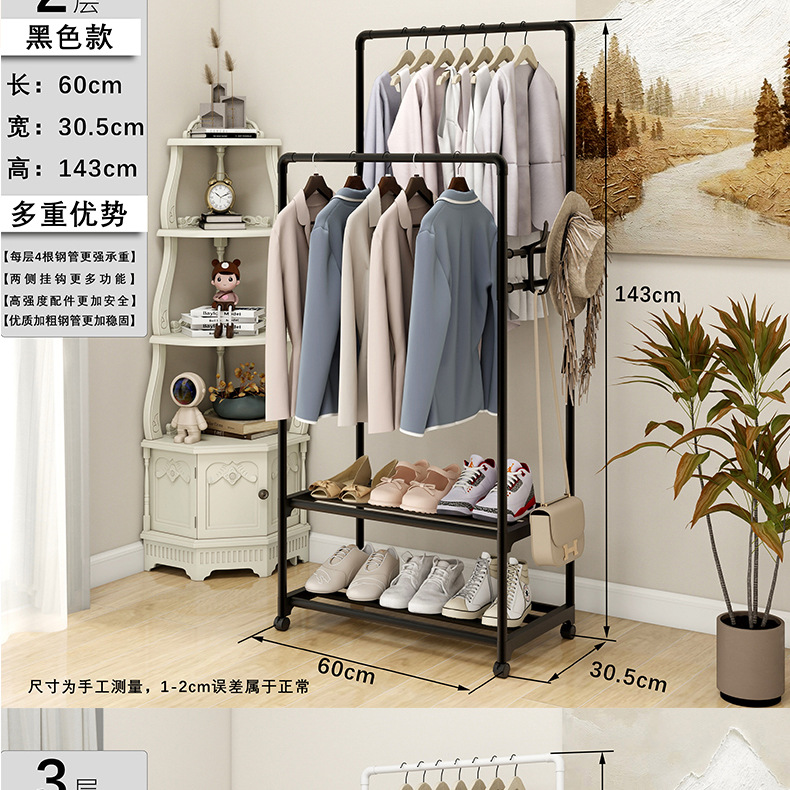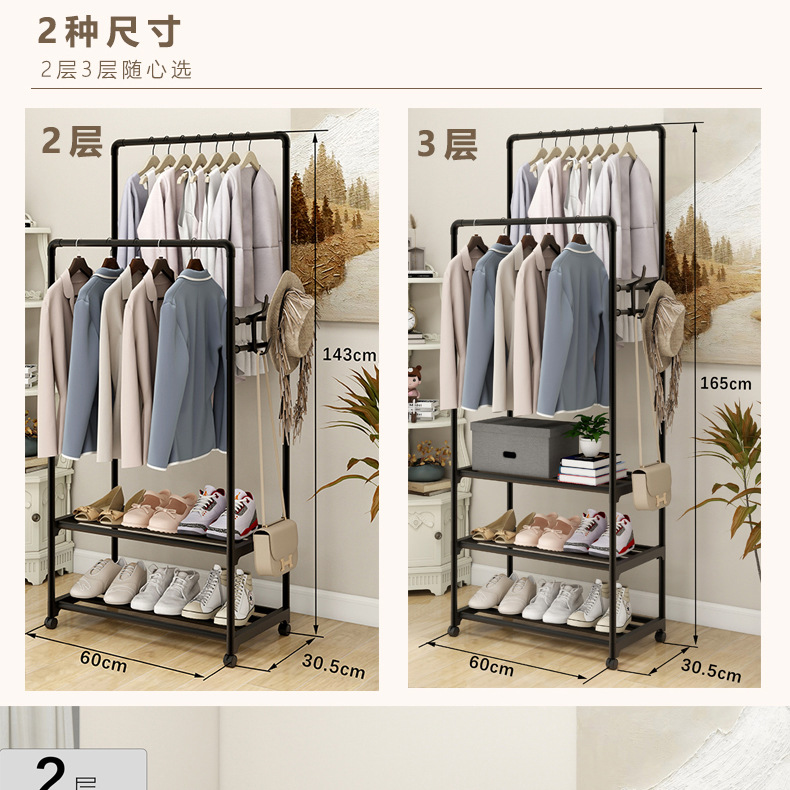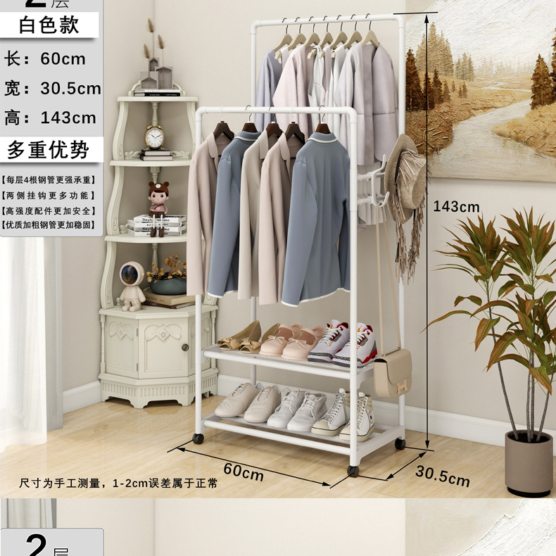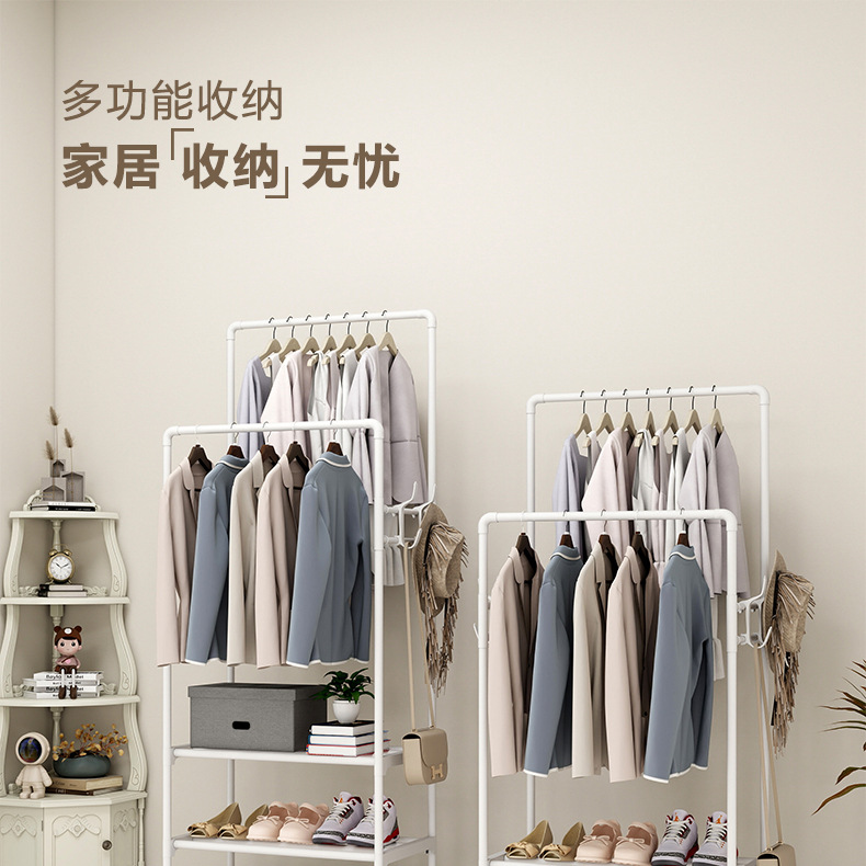 가벼운 고급 더블 폴 다층 옷걸이, 간단한 옷걸이, 가정용 바닥 조합, 이동식 현대식 간단한 옷걸이스토어 가기