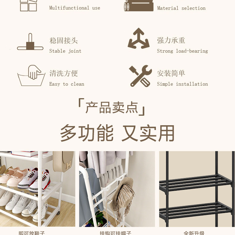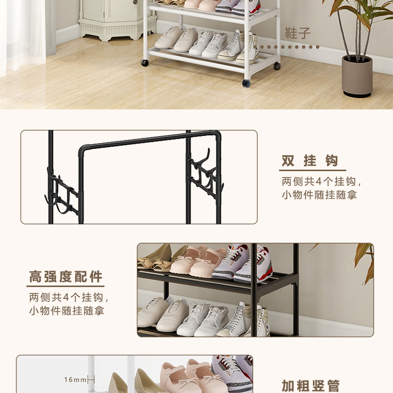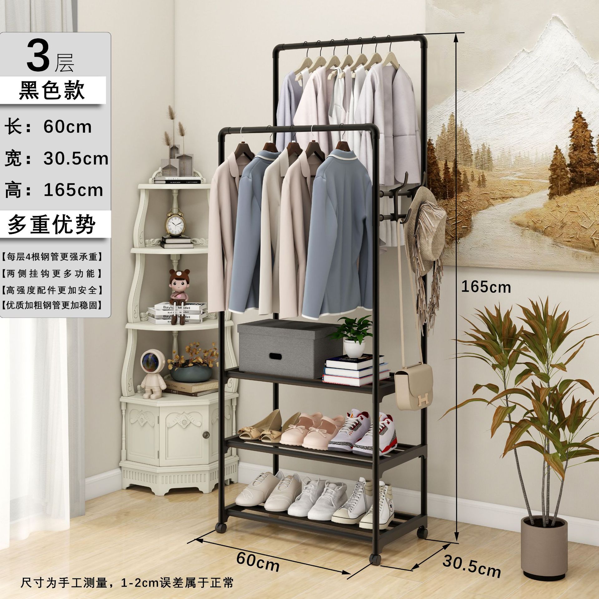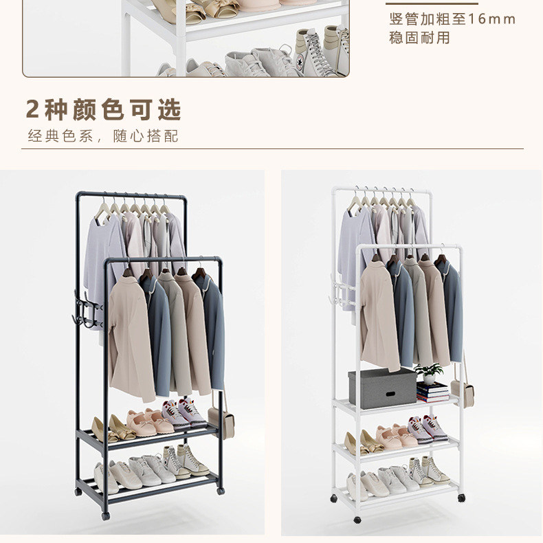 가벼운 고급 더블 폴 다층 옷걸이, 간단한 옷걸이, 가정용 바닥 조합, 이동식 현대식 간단한 옷걸이