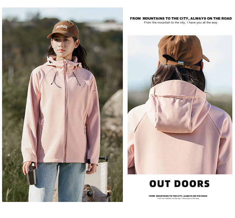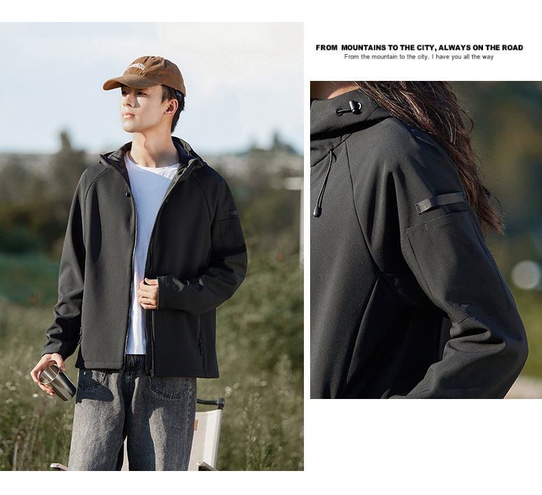 소프트 쉘 여성의 후드 2023 가을과 겨울 새로운 방수 방풍 열 잠금 따뜻한 재킷 코트 남자