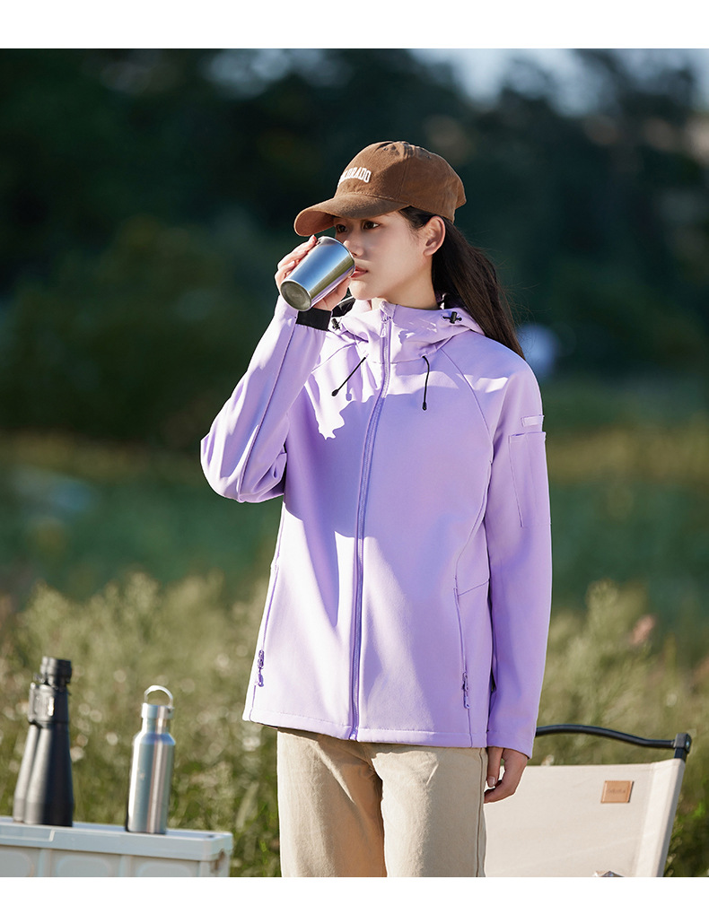 소프트 쉘 여성의 후드 2023 가을과 겨울 새로운 방수 방풍 열 잠금 따뜻한 재킷 코트 남자스토어 가기