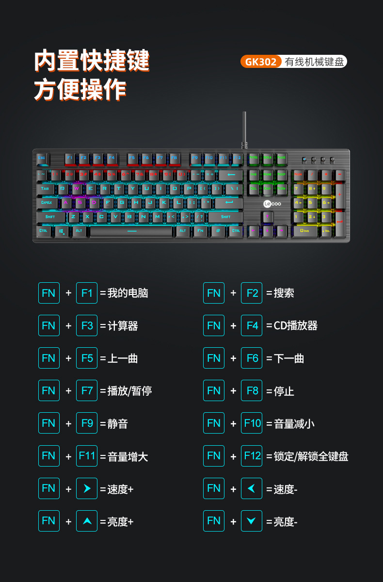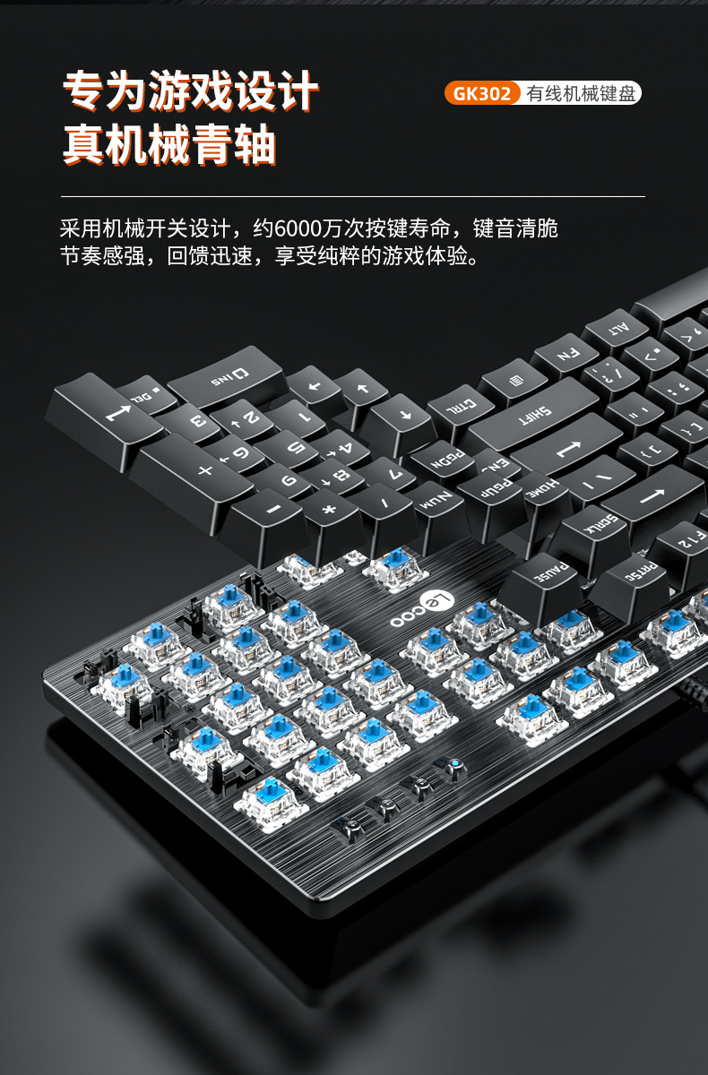 GK302 녹색 샤프트 기계 전자 스포츠 게임 RGB 다채로운 조명 USB 유선 키보드 도매를 식히는 국경 전자 상거래스토어 가기