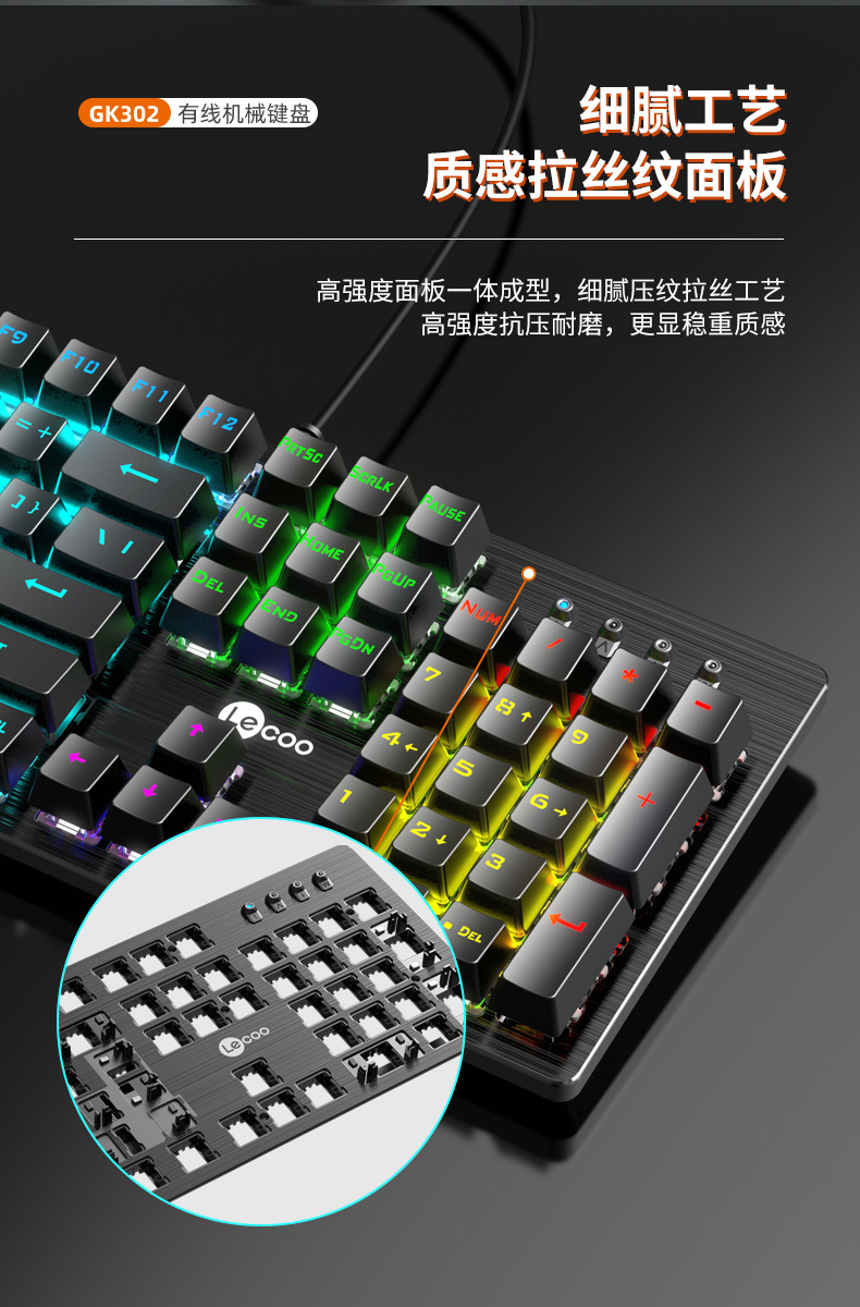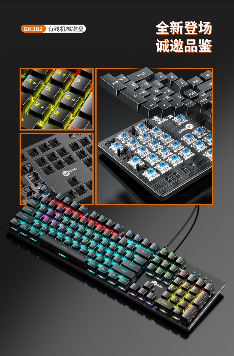 GK302 녹색 샤프트 기계 전자 스포츠 게임 RGB 다채로운 조명 USB 유선 키보드 도매를 식히는 국경 전자 상거래