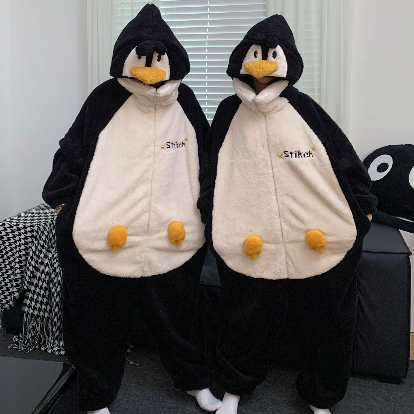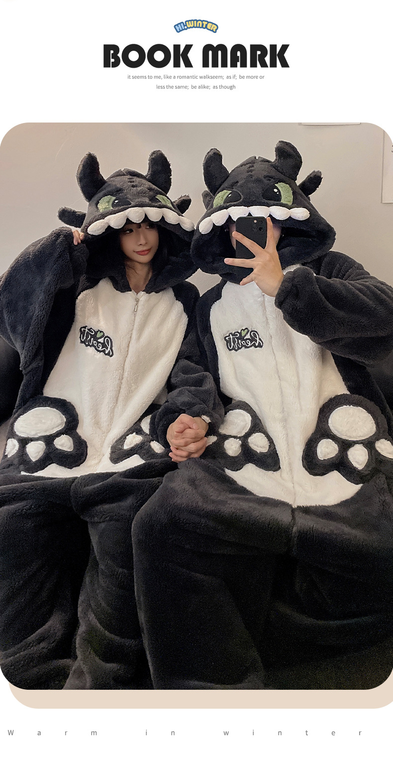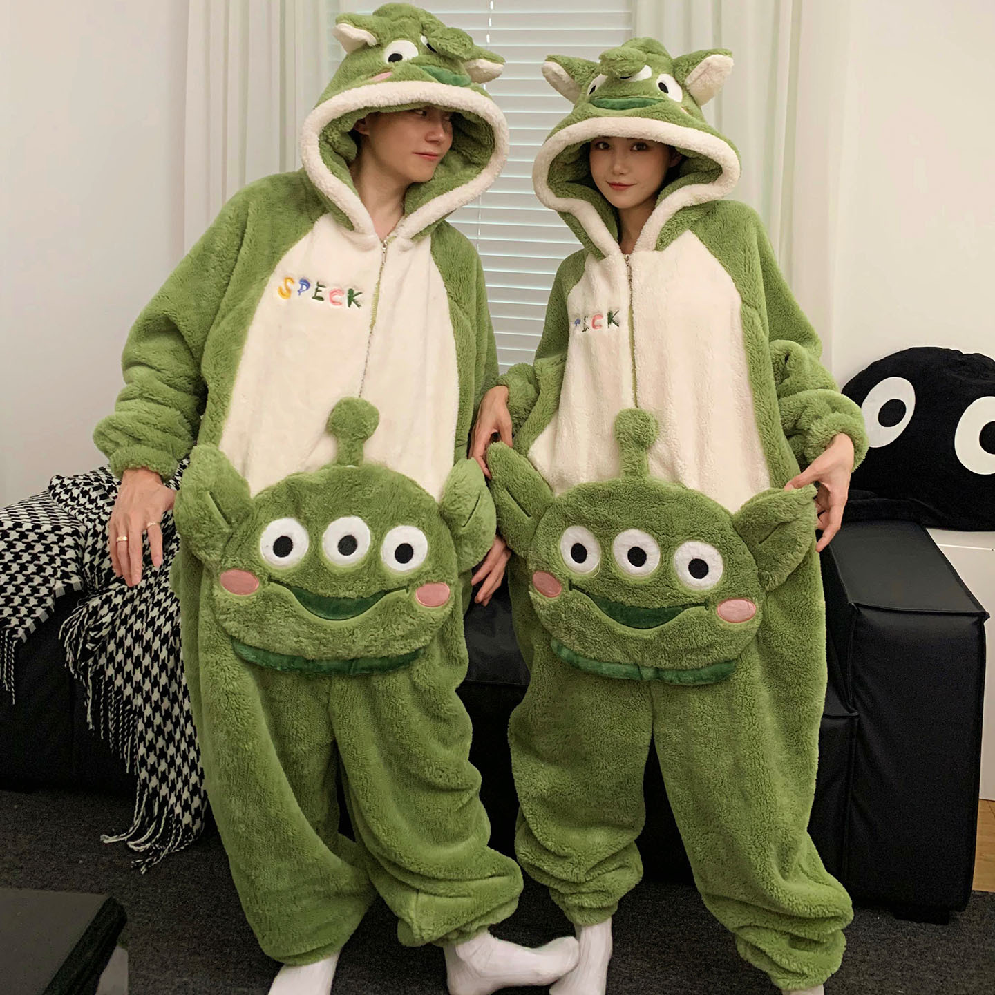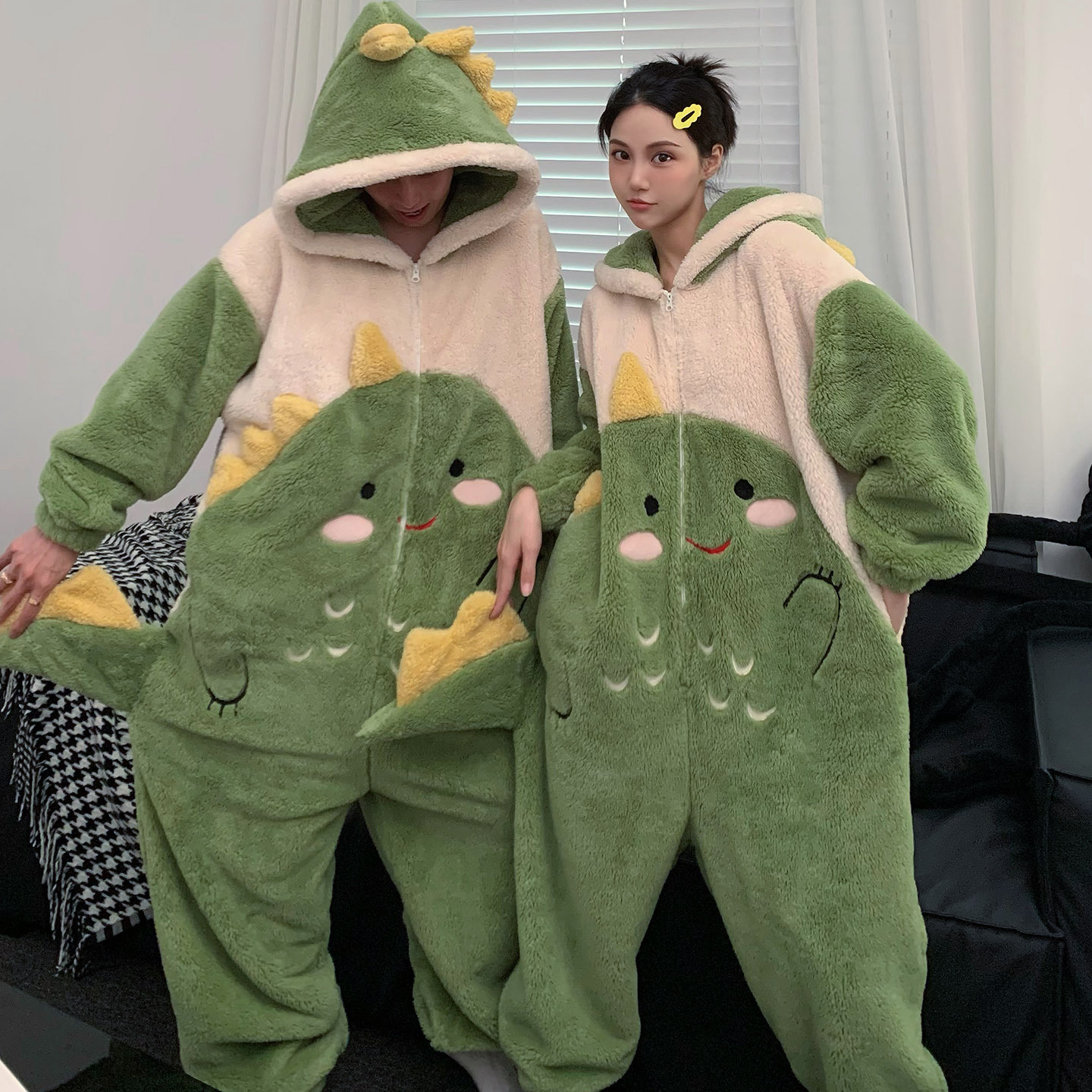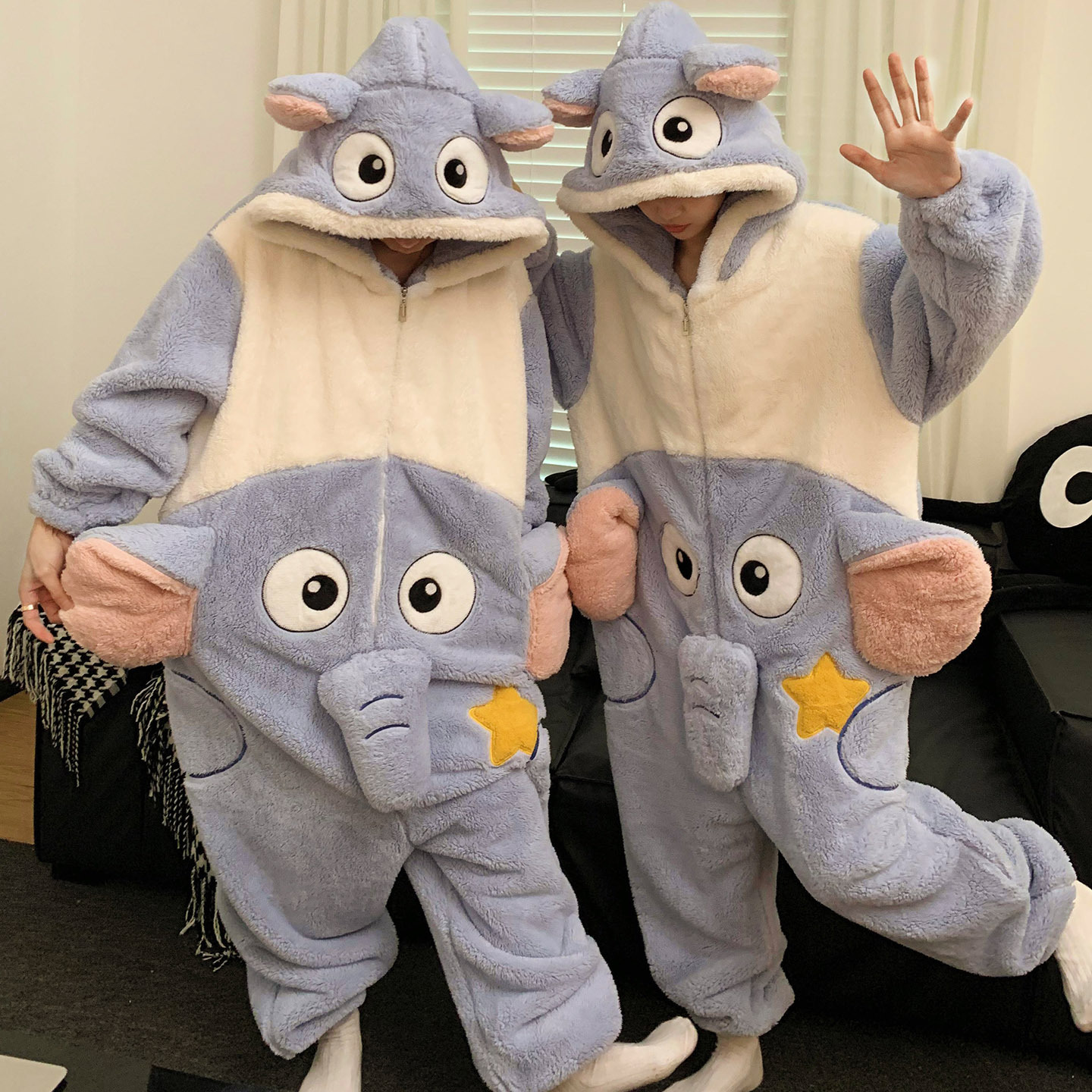 커플 파자마 봉제 두꺼운 따뜻한 귀여운 만화 재미 Unibody 옷 남자의 느슨한 2024 새로운 스타일 홈 옷스토어 가기