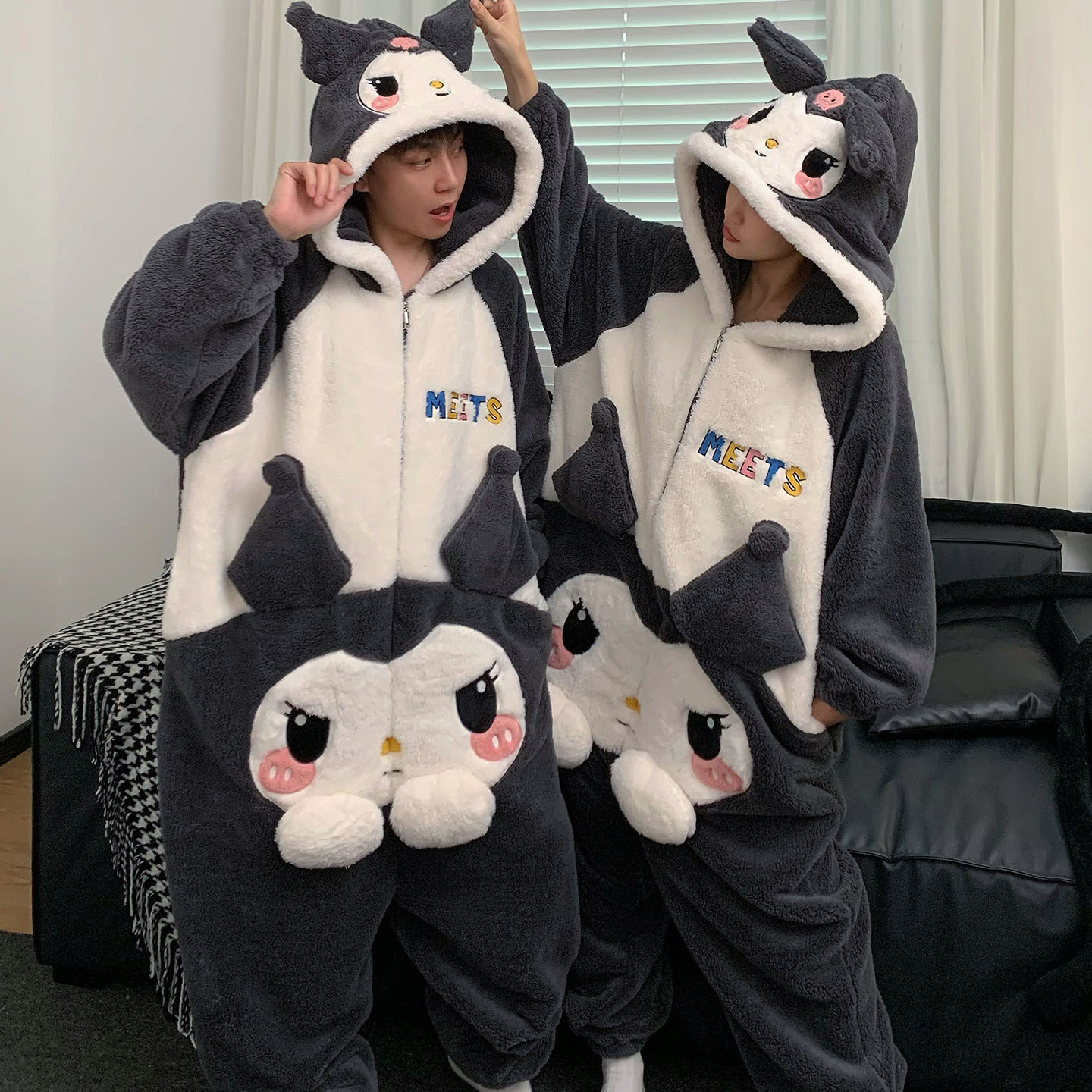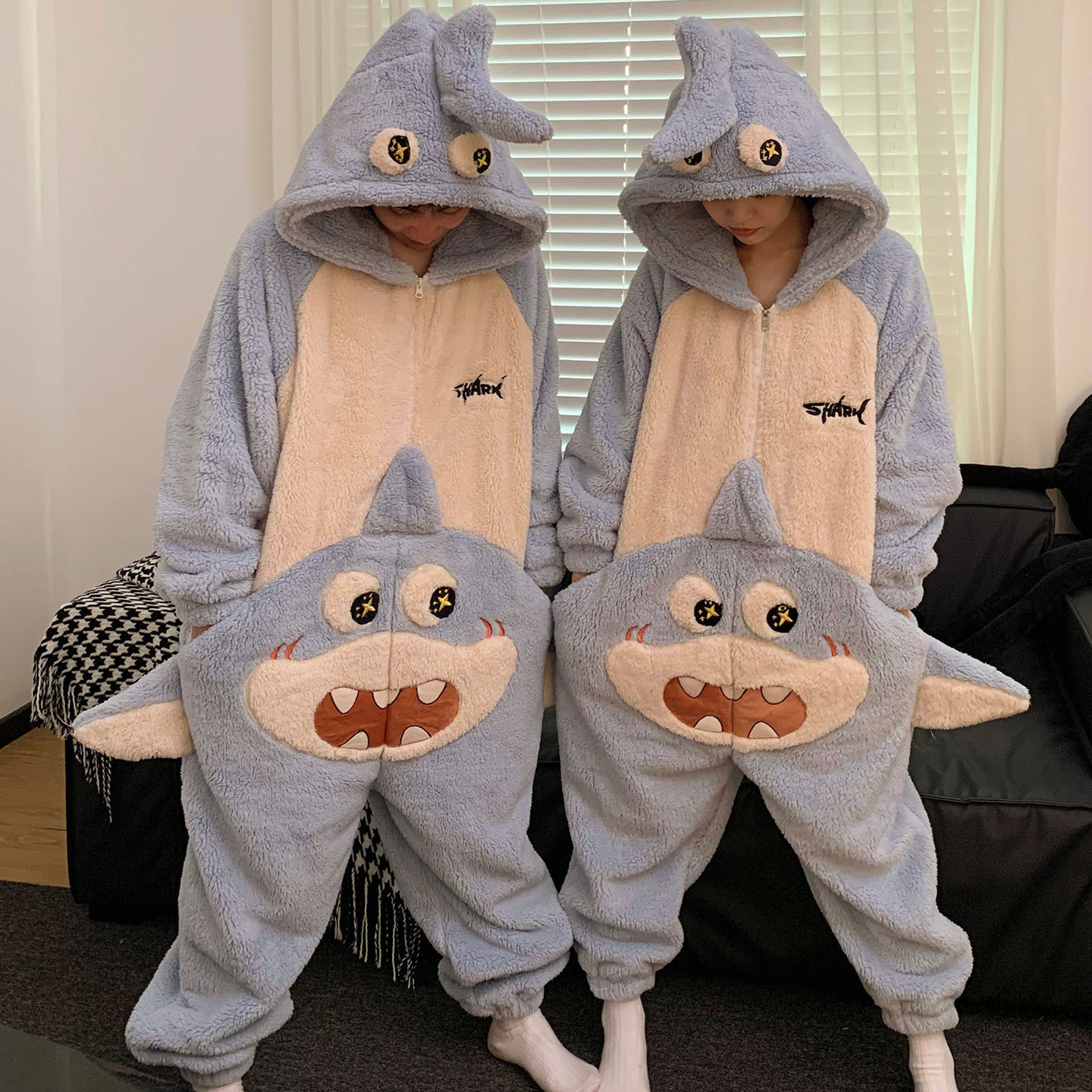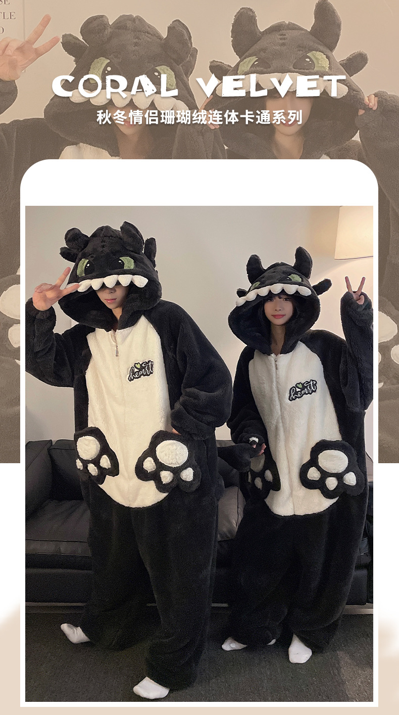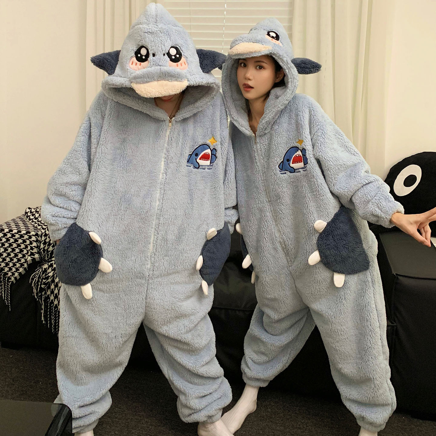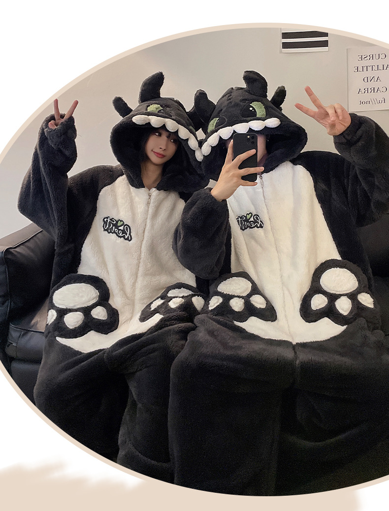 커플 파자마 봉제 두꺼운 따뜻한 귀여운 만화 재미 Unibody 옷 남자의 느슨한 2024 새로운 스타일 홈 옷스토어 가기