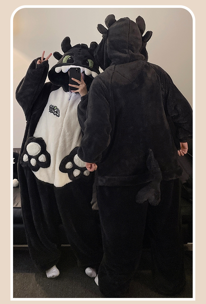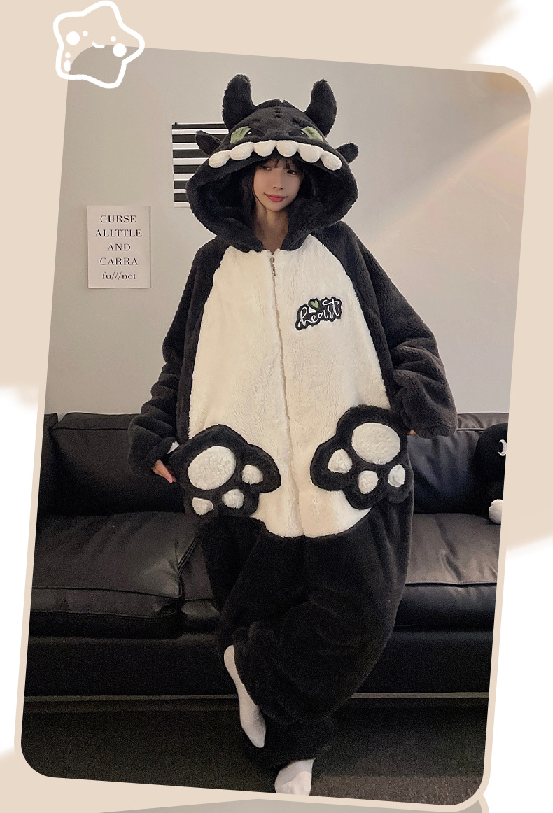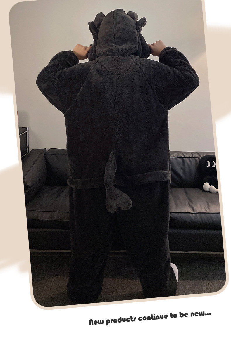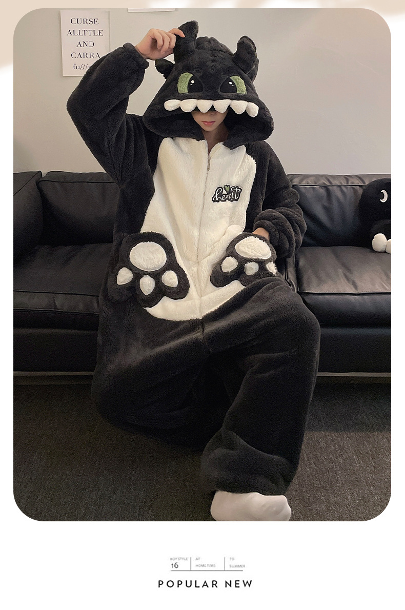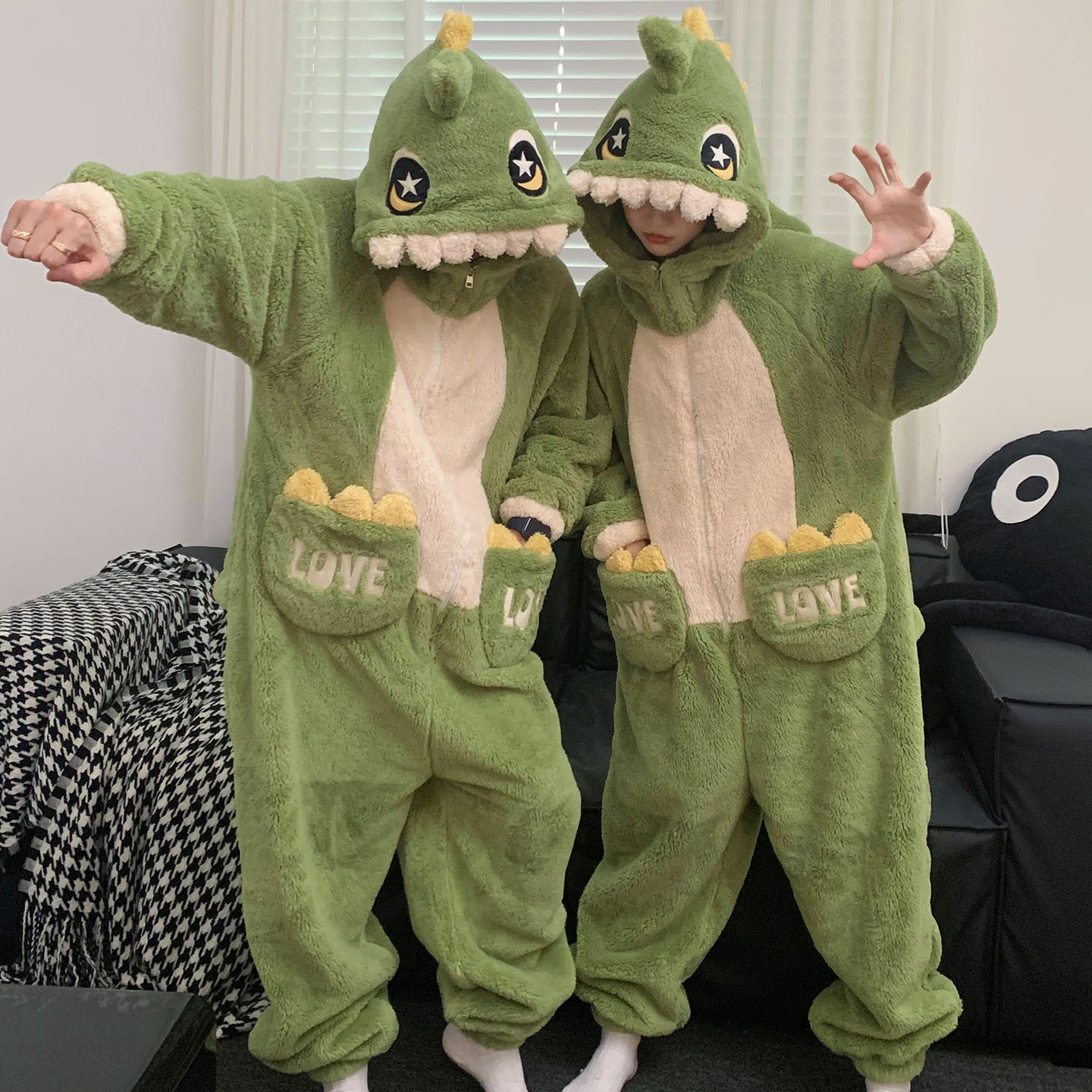 커플 파자마 봉제 두꺼운 따뜻한 귀여운 만화 재미 Unibody 옷 남자의 느슨한 2024 새로운 스타일 홈 옷스토어 가기