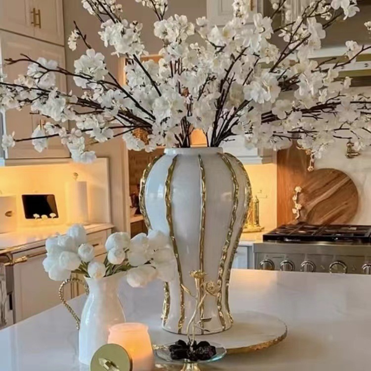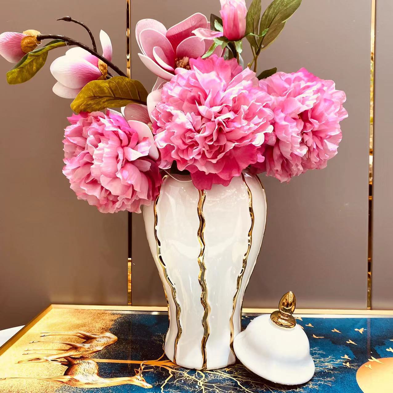 세라믹 라이트 럭셔리 전기 도금 일반 항아리 유럽 꽃 꽃병 공예 장식품 복도 부드러운 장식 저장 항아리