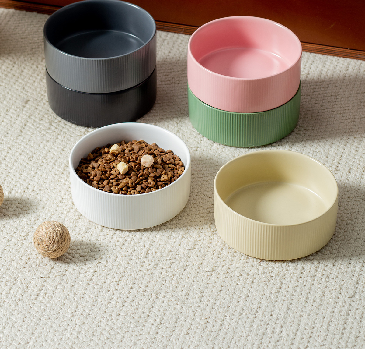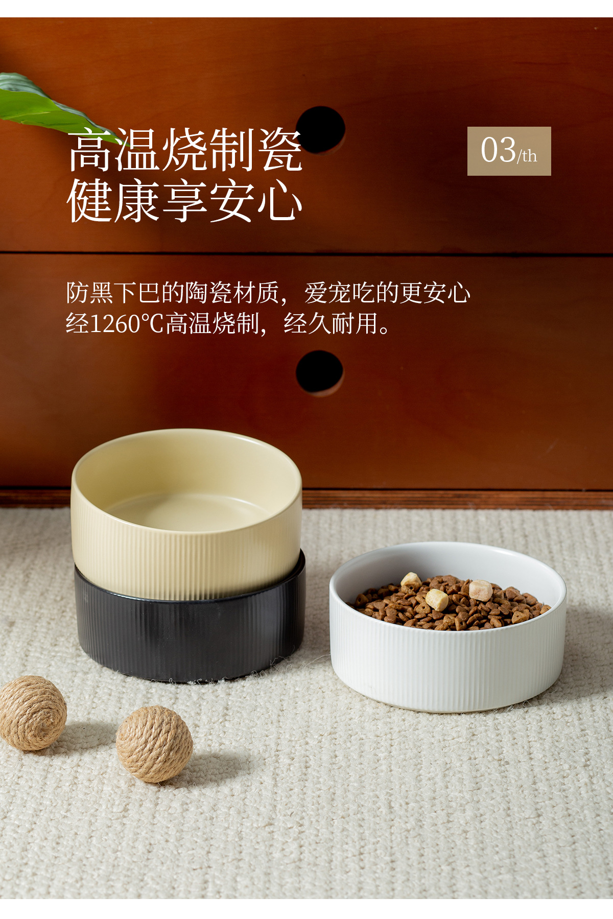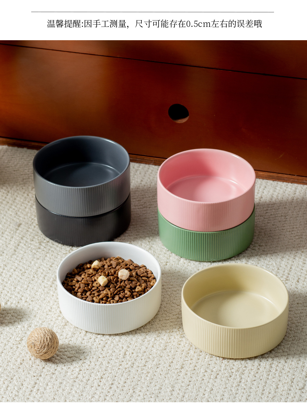 크림 스타일 시리즈 스트라이프 스트레이트 보울, 그릇 랙 가정용 세라믹 애완 동물 그릇 대용량 고양이 그릇 개 그릇 마시는 그릇스토어 가기