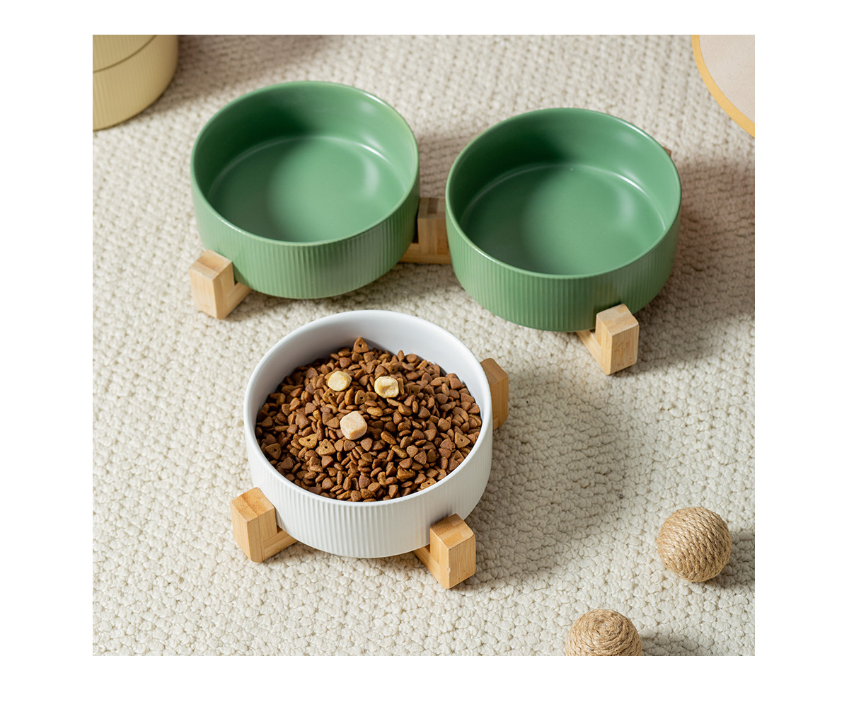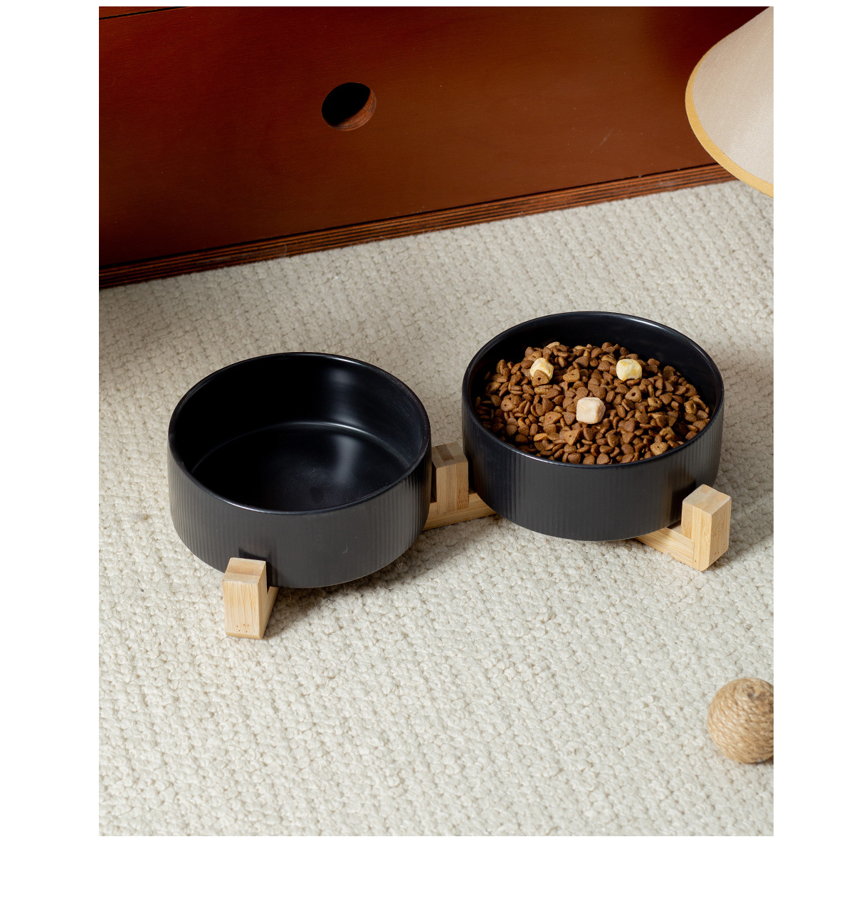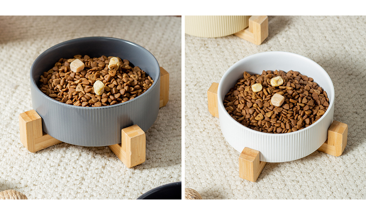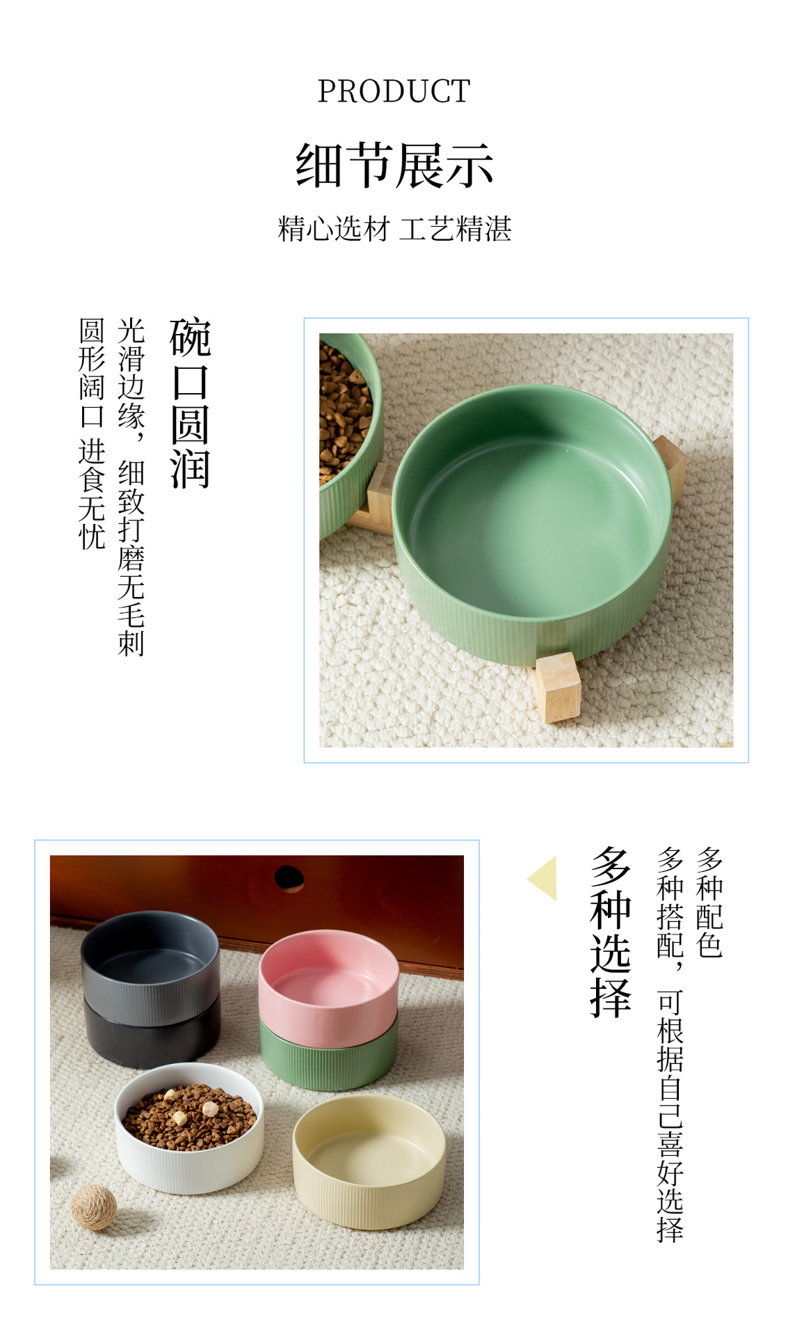 크림 스타일 시리즈 스트라이프 스트레이트 보울, 그릇 랙 가정용 세라믹 애완 동물 그릇 대용량 고양이 그릇 개 그릇 마시는 그릇스토어 가기
