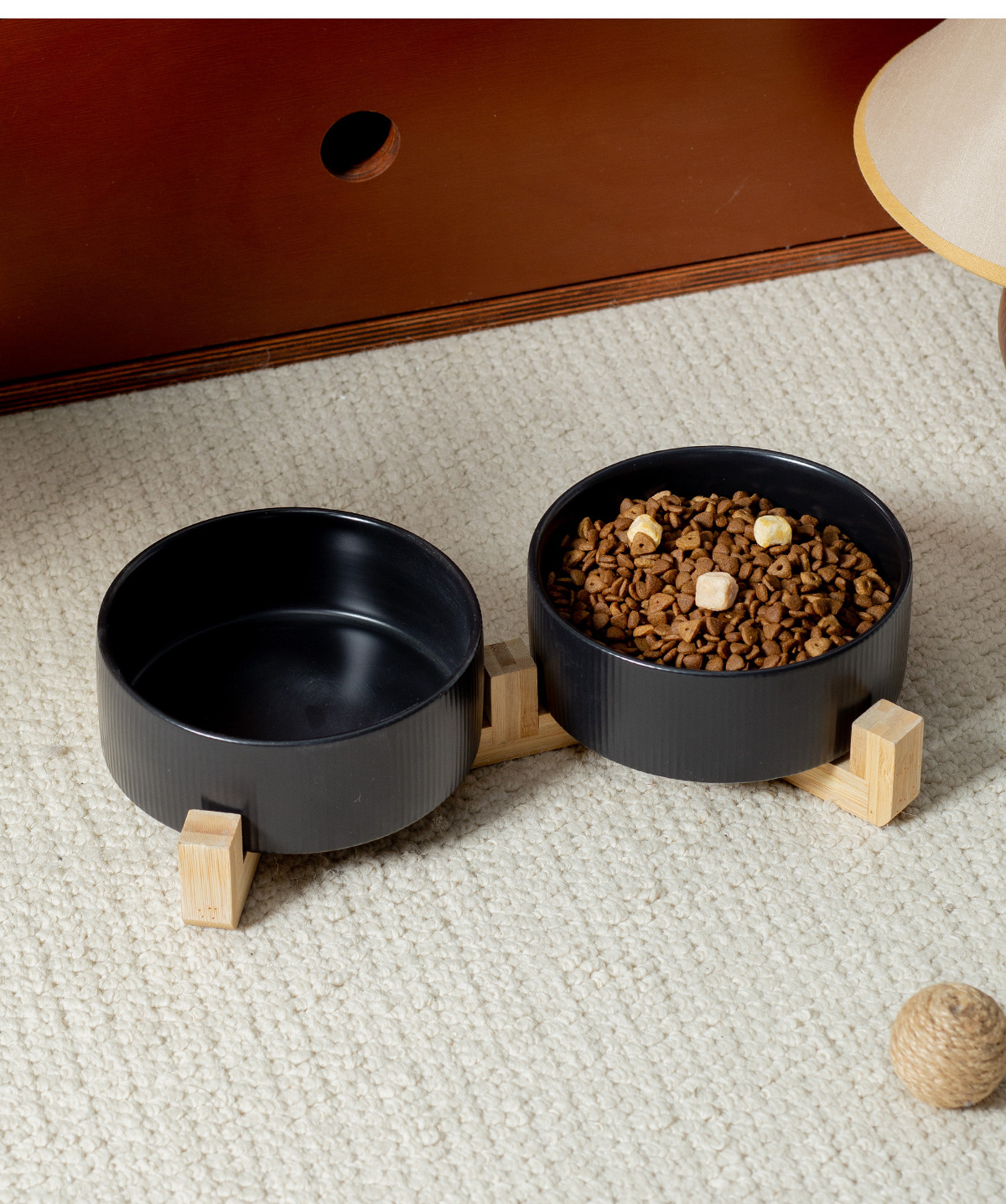 • 줄무늬 직구 그릇 [매트 블랙] + 이중 나무 스탠드