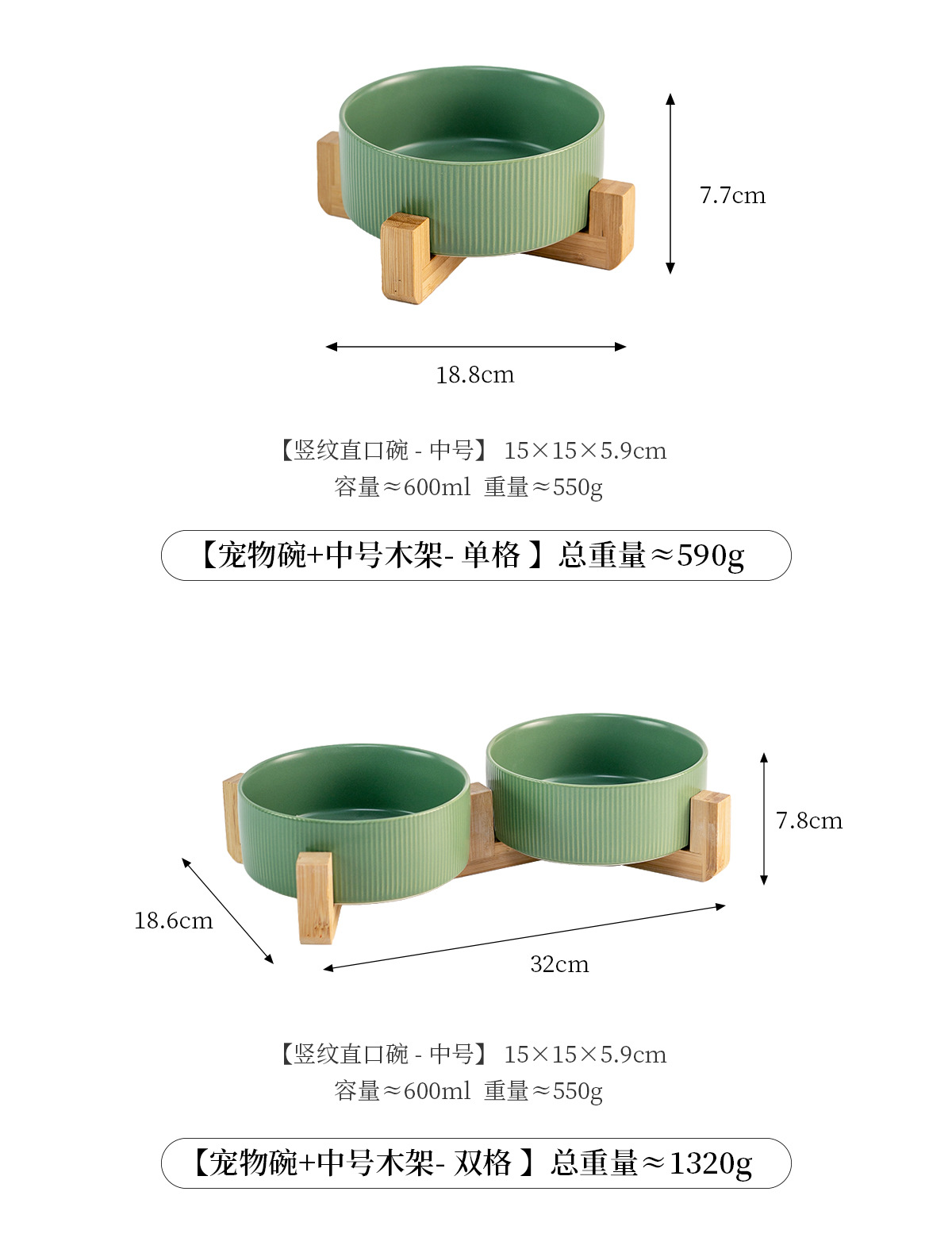 • 줄무늬 직구 그릇 [무광 녹색] + 이중 나무 스탠드