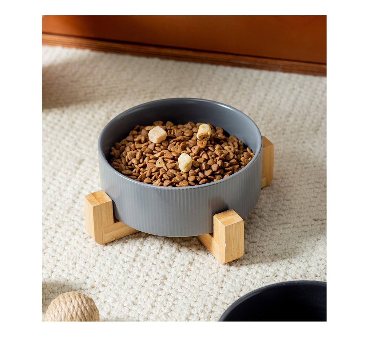 • 줄무늬 직구 그릇 [매트 그레이] + 이중 나무 스탠드