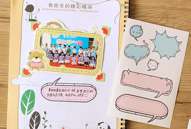만화 어린이 쓰기 스티커 쓰기 스티커 성장 수동 장식 재료 아기 사진 앨범 손으로 쓴 타블로이드 Jueqin