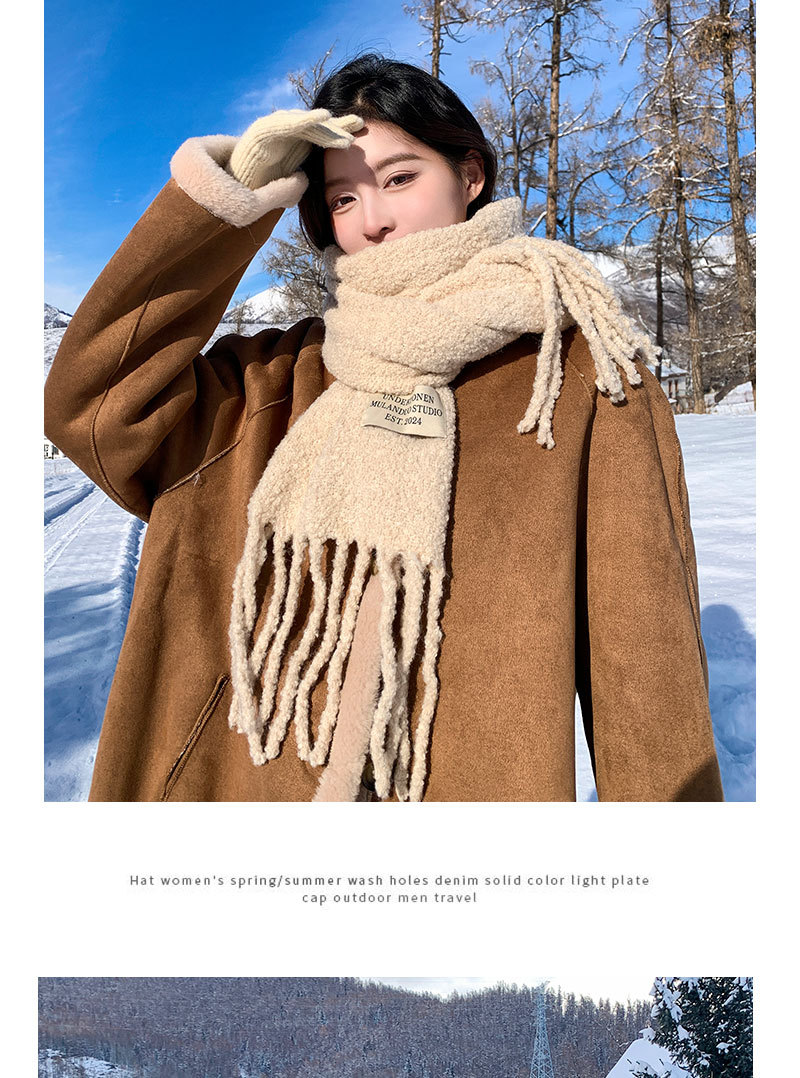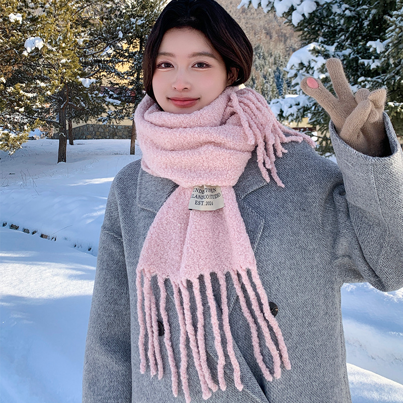 스카프 여자 겨울 2024 겨울 한국 스타일 양모 술 스카프 여자 올 매치 대기 두꺼운 따뜻한 스카프