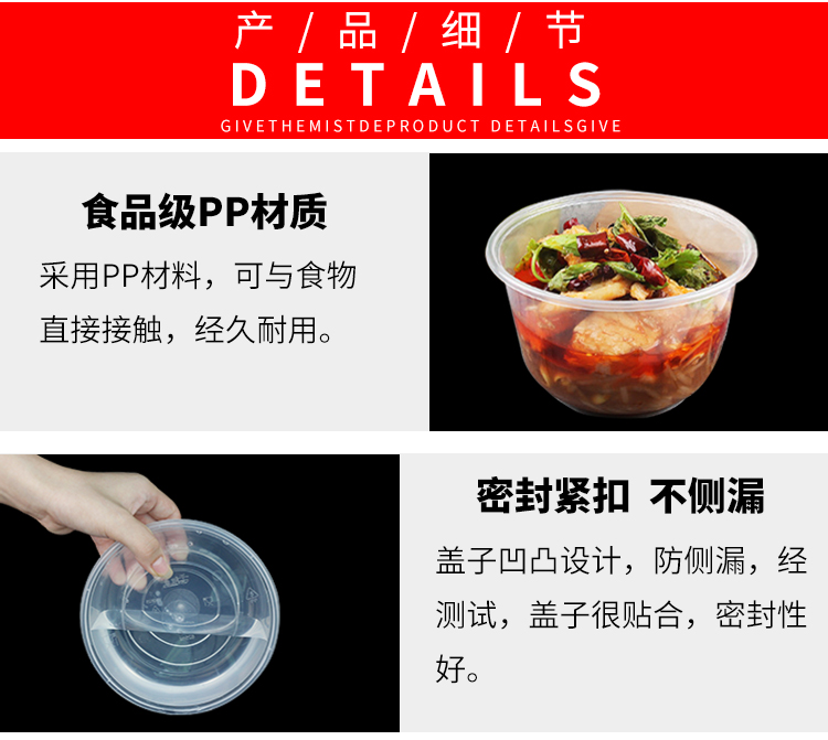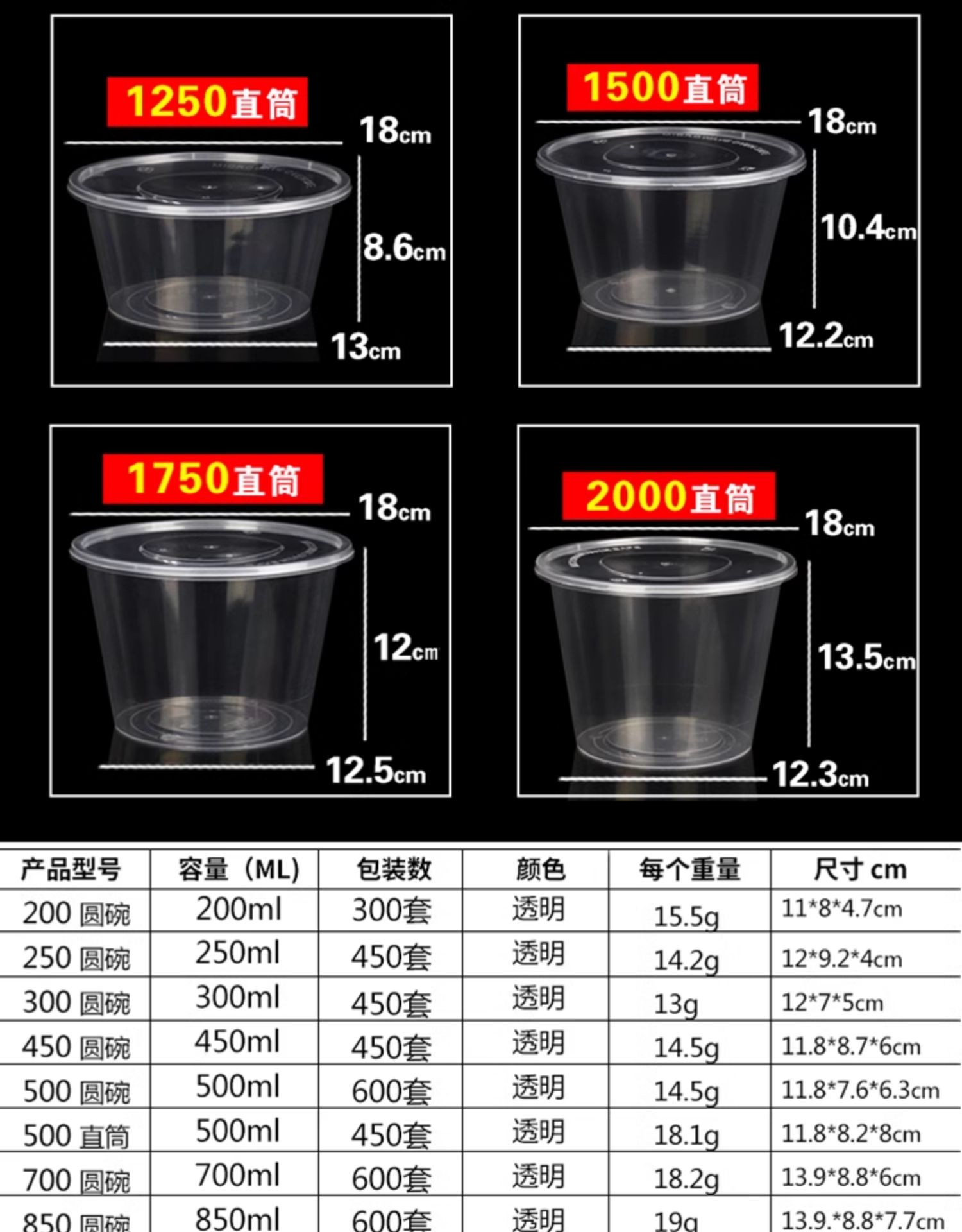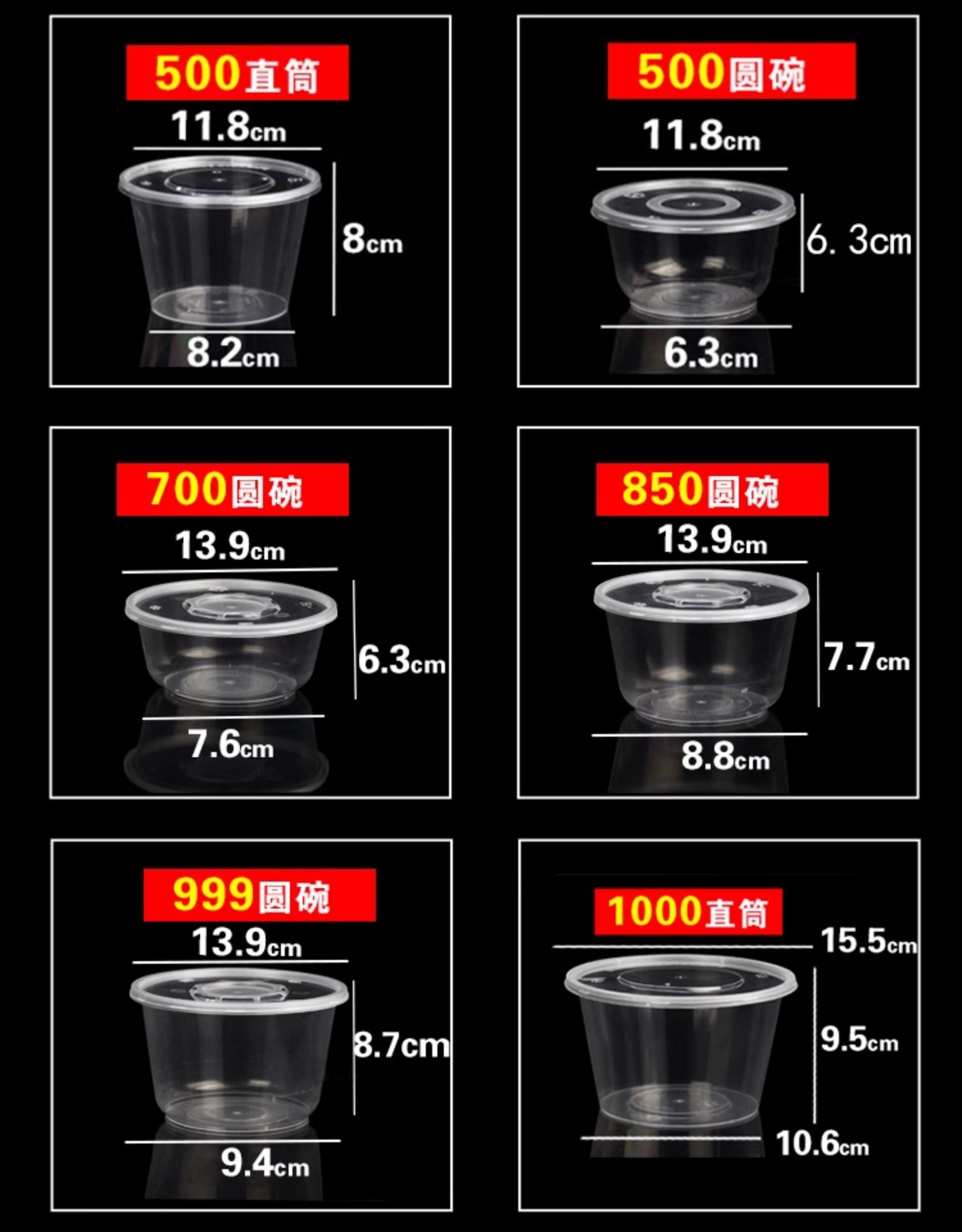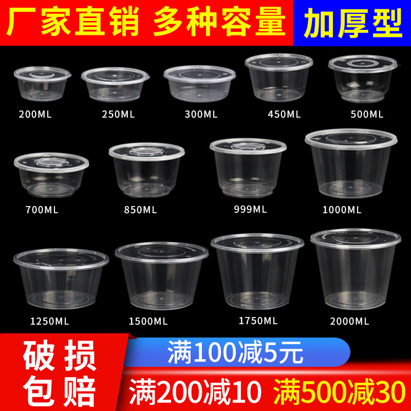 일회용 도시락 테이크 아웃 포장 상자 두꺼운 배럴 수프 그릇 둥근 누출되지 않는 pp 투명 플라스틱 패스트 푸드 뚜껑