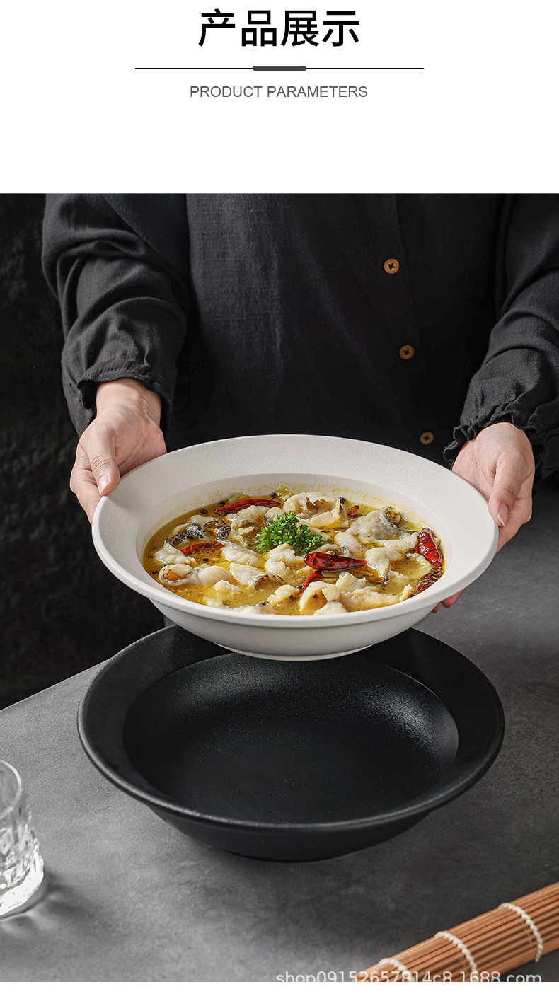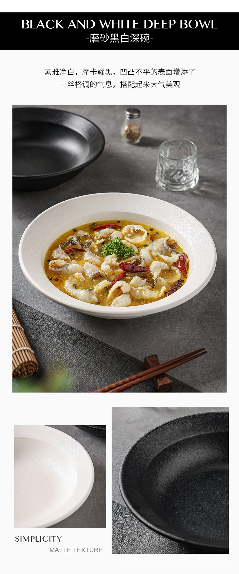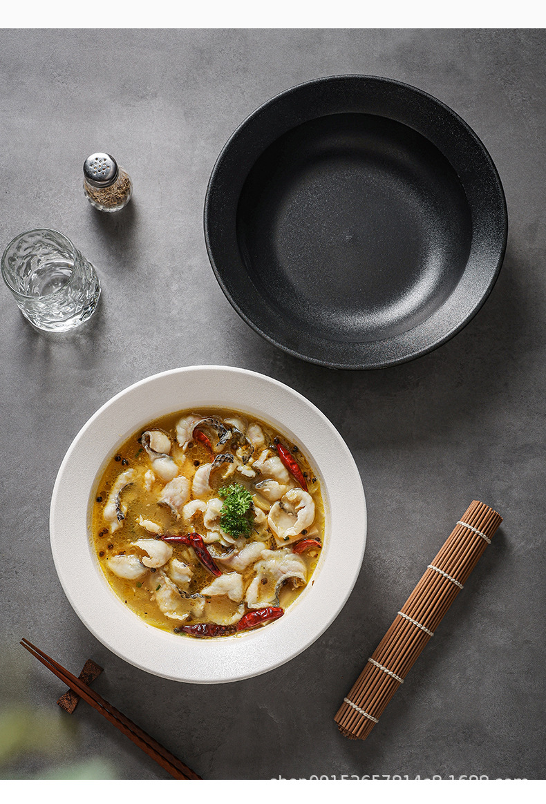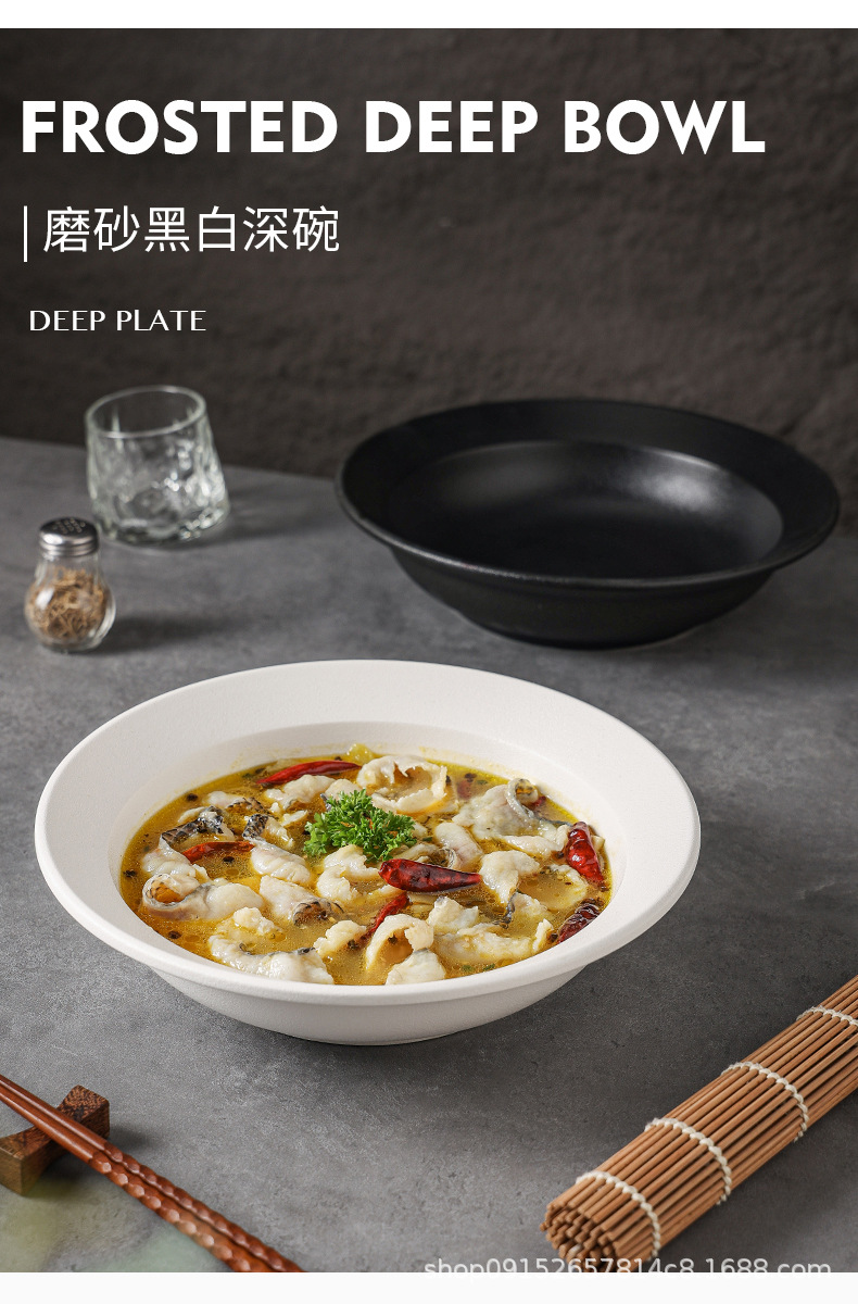 세라믹 수프 냄비 삶은 생선 절인 생선 가정용 대형 수프 그릇 흑백 대형 그릇 상업용 수프 플레이트 도매 가격 아름다운스토어 가기