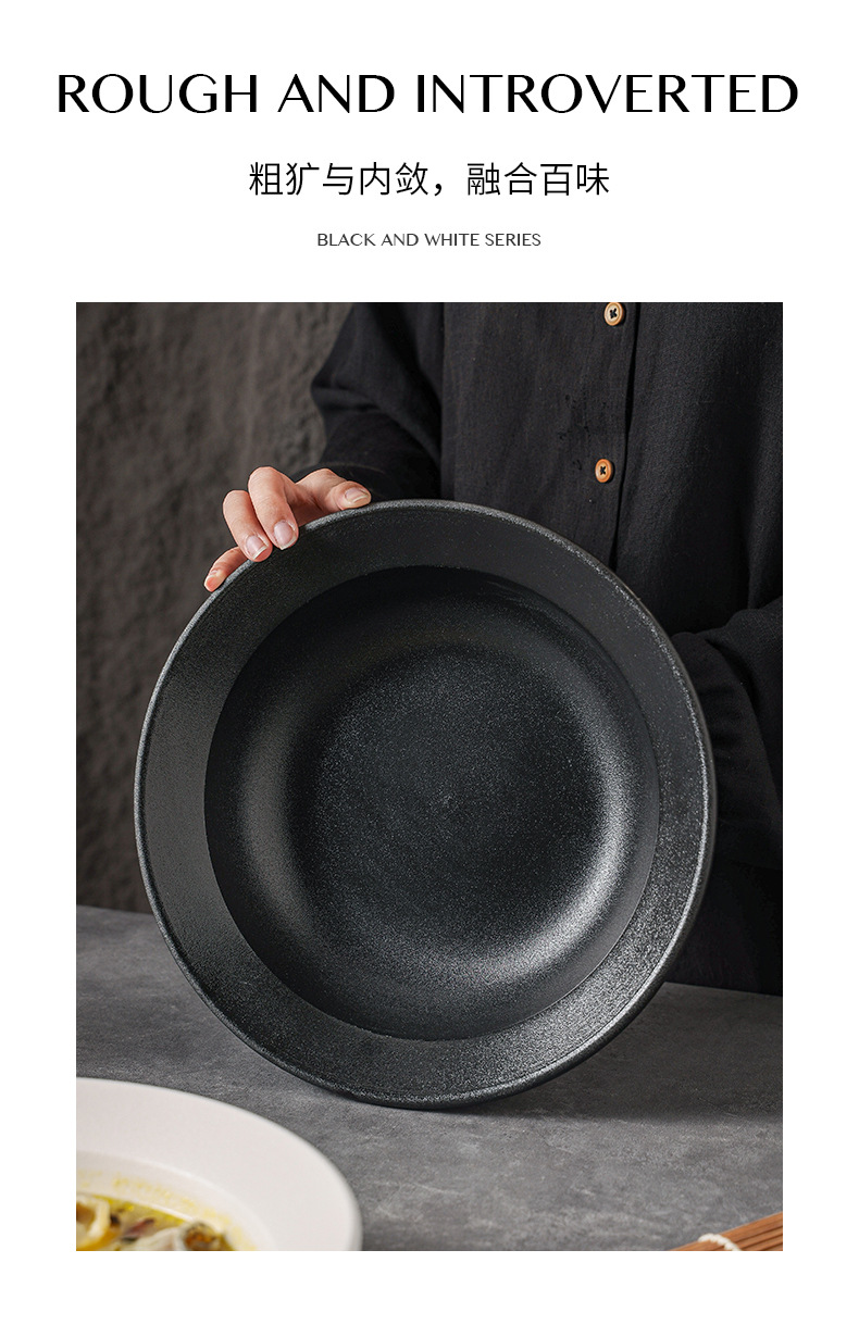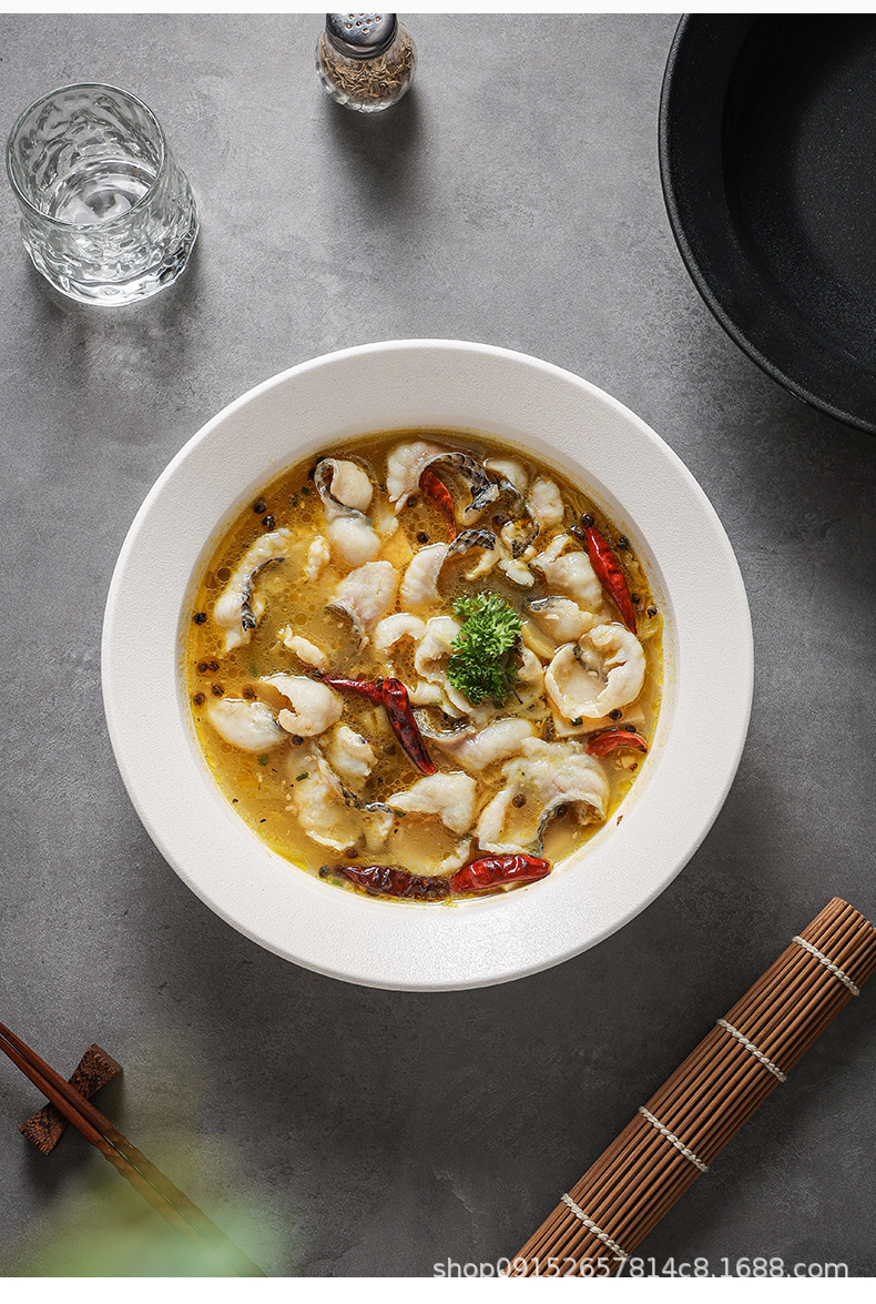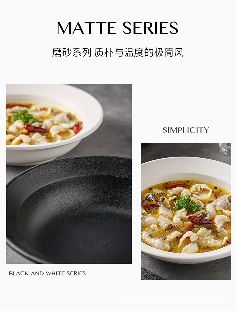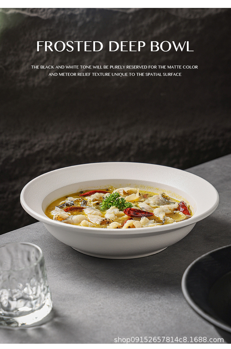 세라믹 수프 냄비 삶은 생선 절인 생선 가정용 대형 수프 그릇 흑백 대형 그릇 상업용 수프 플레이트 도매 가격 아름다운스토어 가기