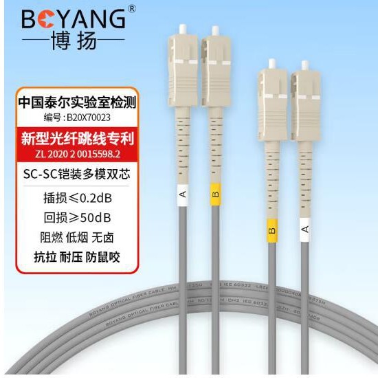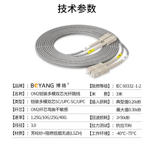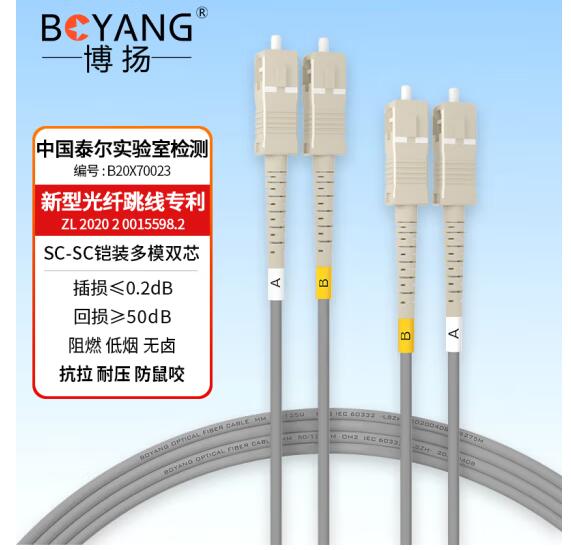 博扬(BOYANG)电信级铠装光纤跳线sc-sc 3米 多模50/125双工 抗拉压防鼠咬低烟无卤环保网线光纤线 BY-K3112M