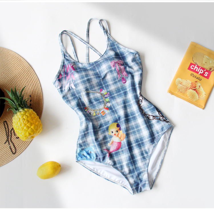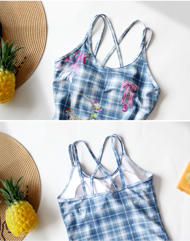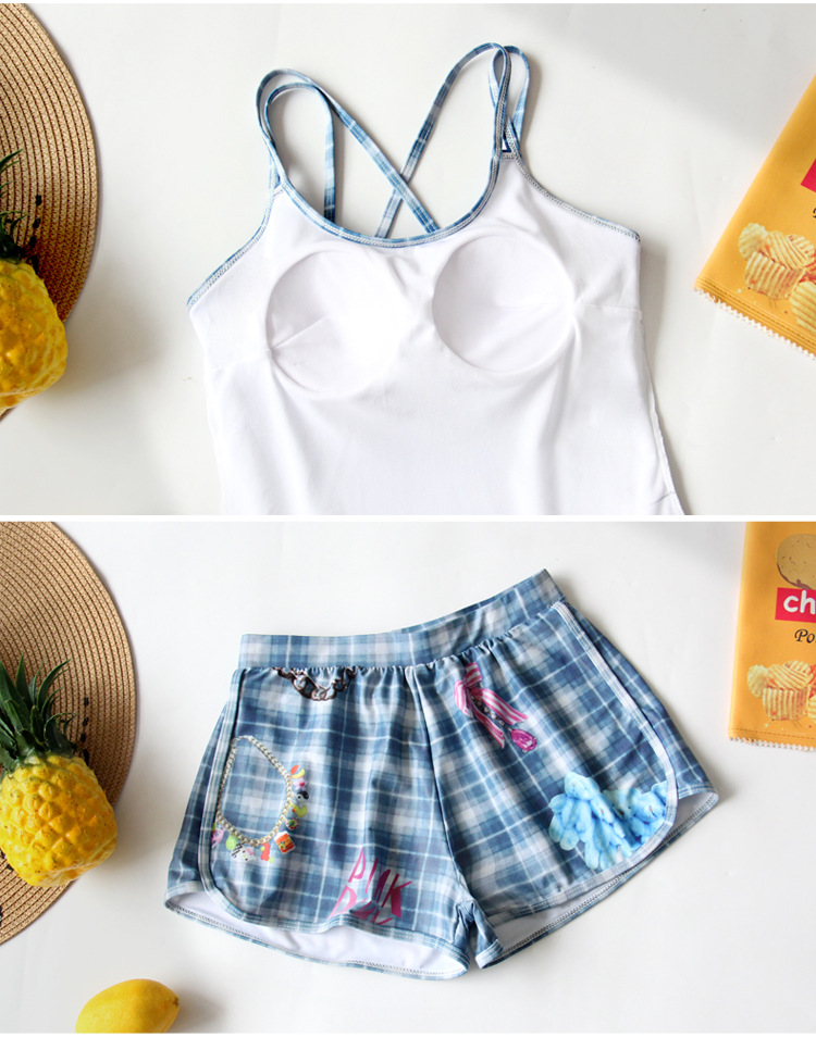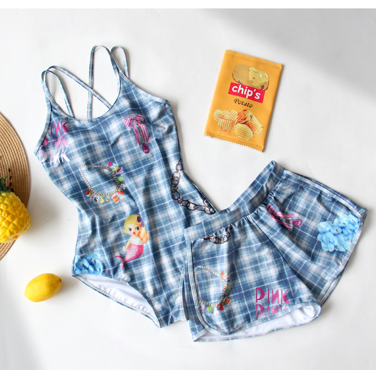 한국 스타일 Ins 스타일 블루 바지 유행 스트랩 삼각형 수영복 여성의 새로운 국경 백리스 비키니스토어 가기