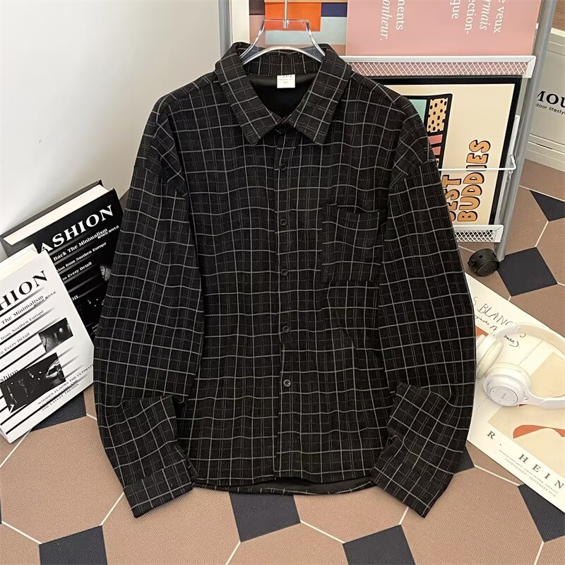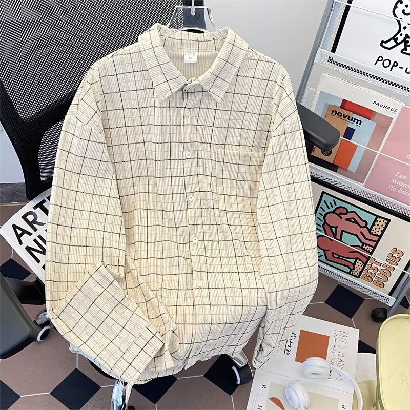 봄과 가을 스타일 고급 격자 무늬 긴팔 셔츠 남자 일본 스타일 레트로 루즈 캐주얼 아우터 착용 옷깃 셔츠 재킷스토어 가기