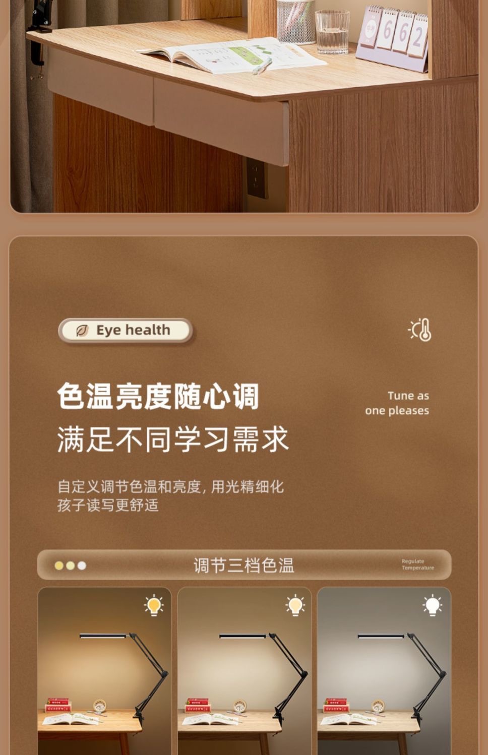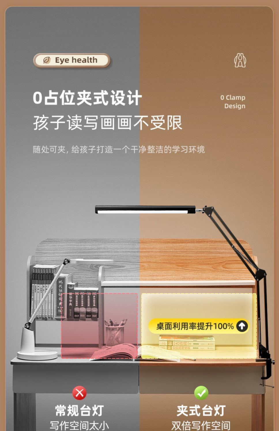국경 간 LED 연구 조명 책상 독서 램프 긴 팔 클립 디자인 작업 컴퓨터 눈 보호 USB 책상 램프 테이블스토어 가기