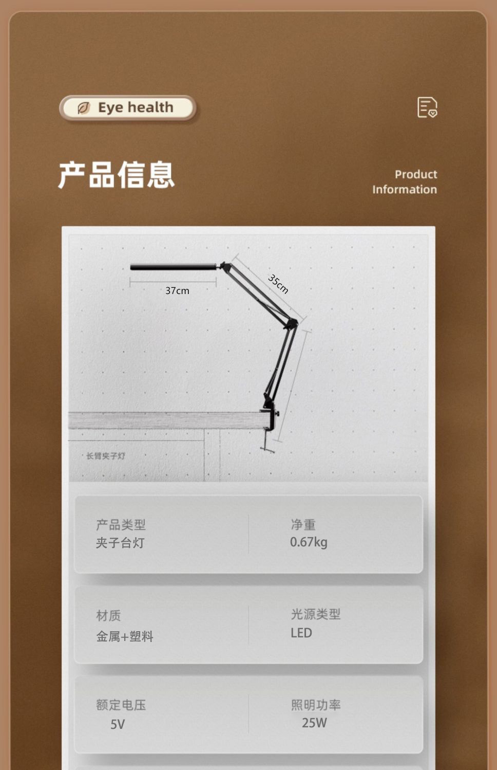 국경 간 LED 연구 조명 책상 독서 램프 긴 팔 클립 디자인 작업 컴퓨터 눈 보호 USB 책상 램프 테이블
