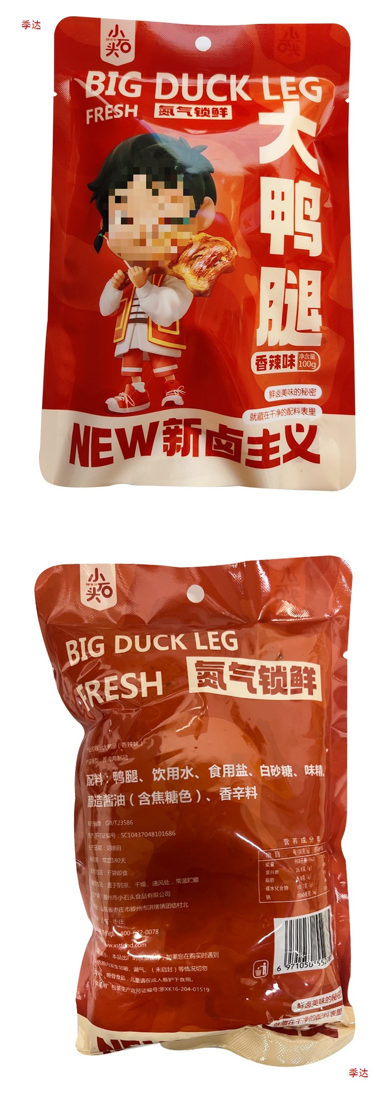 질소 잠금 신선한 큰 오리 다리 작은 돌 절인 간식 간식 매운 오픈 백 인스턴트 100 g/가방