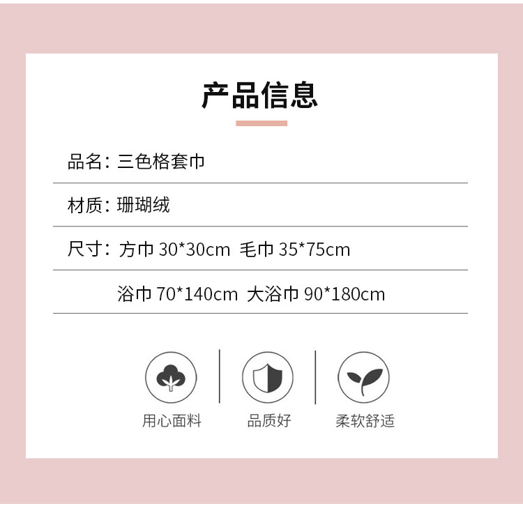 3 색 사각형 수건 목욕 타월 세트 산호 양털 목욕 타월 가정용 흡수성 얼굴 타월 부드러운 국경 목욕 타월스토어 가기