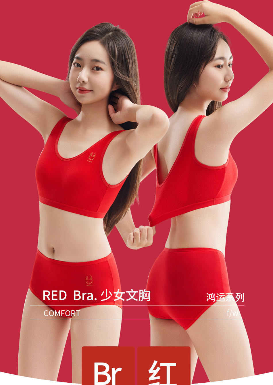 Anfeiya의 큰 빨간 속옷 여아 아름다운 뒷걸스 브라 중학생 땀 흡수성 작은 조끼 세트
