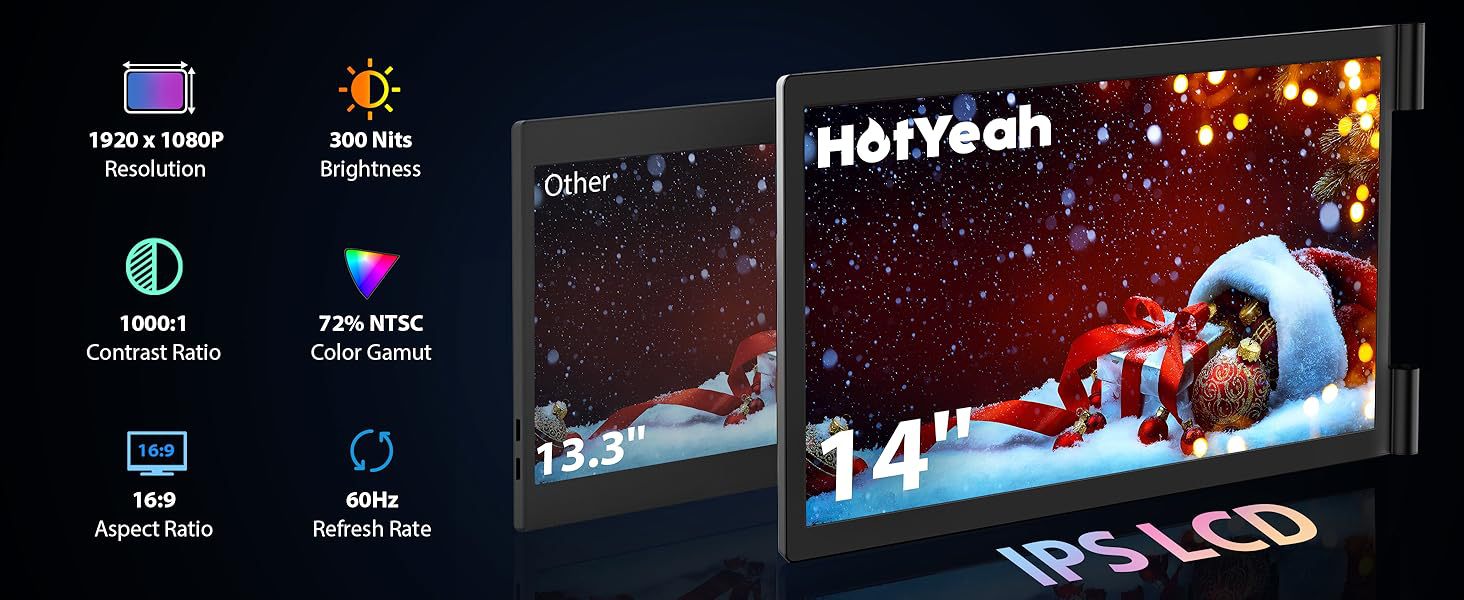 14 인치 듀얼 스크린 휴대용 디스플레이 노트북 확장 화면 주식 거래 멀티 스크린 접이식 주변 서브 스크린 멀티 기능