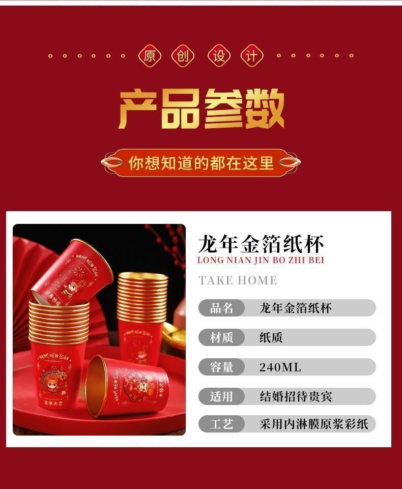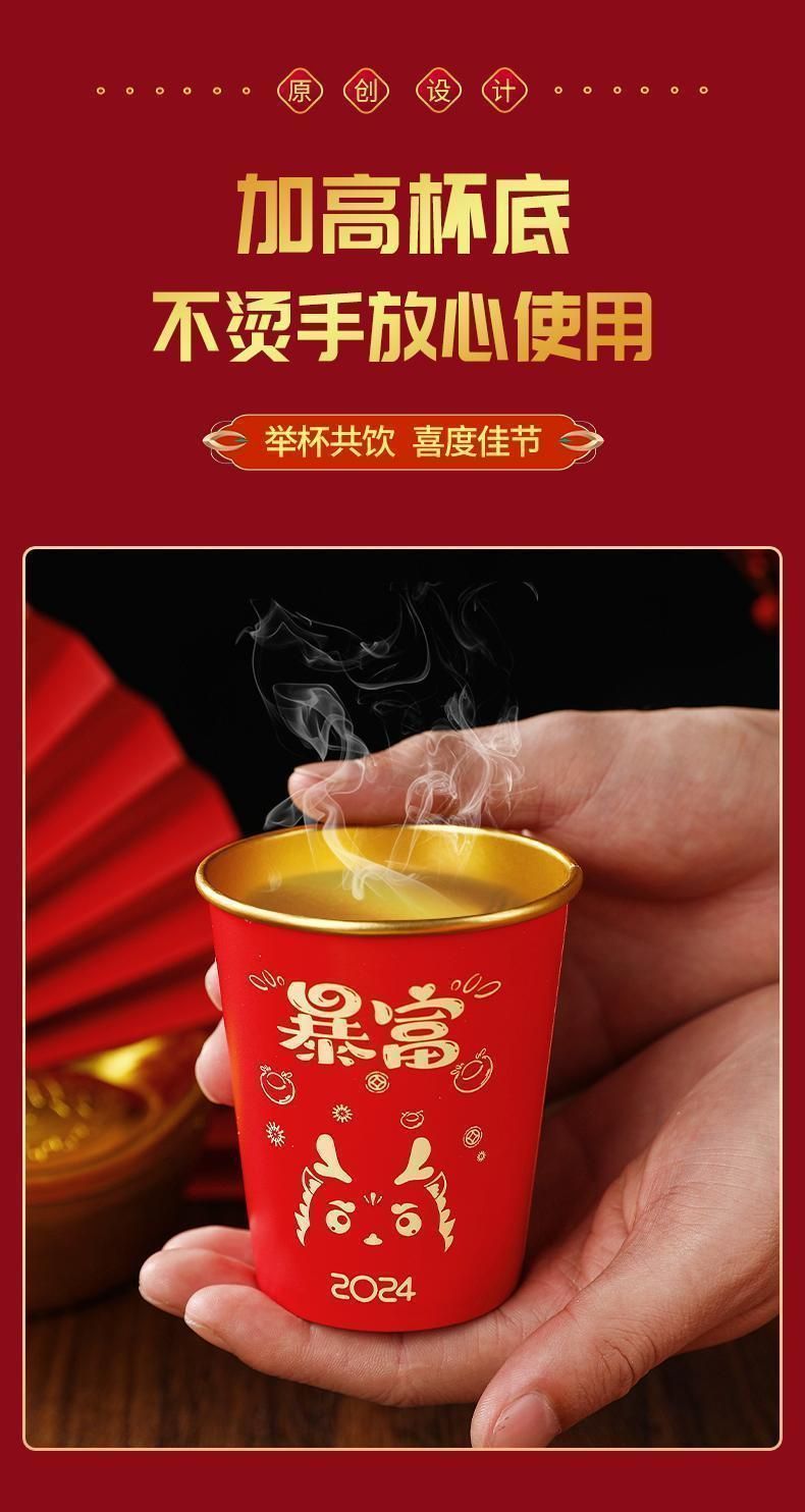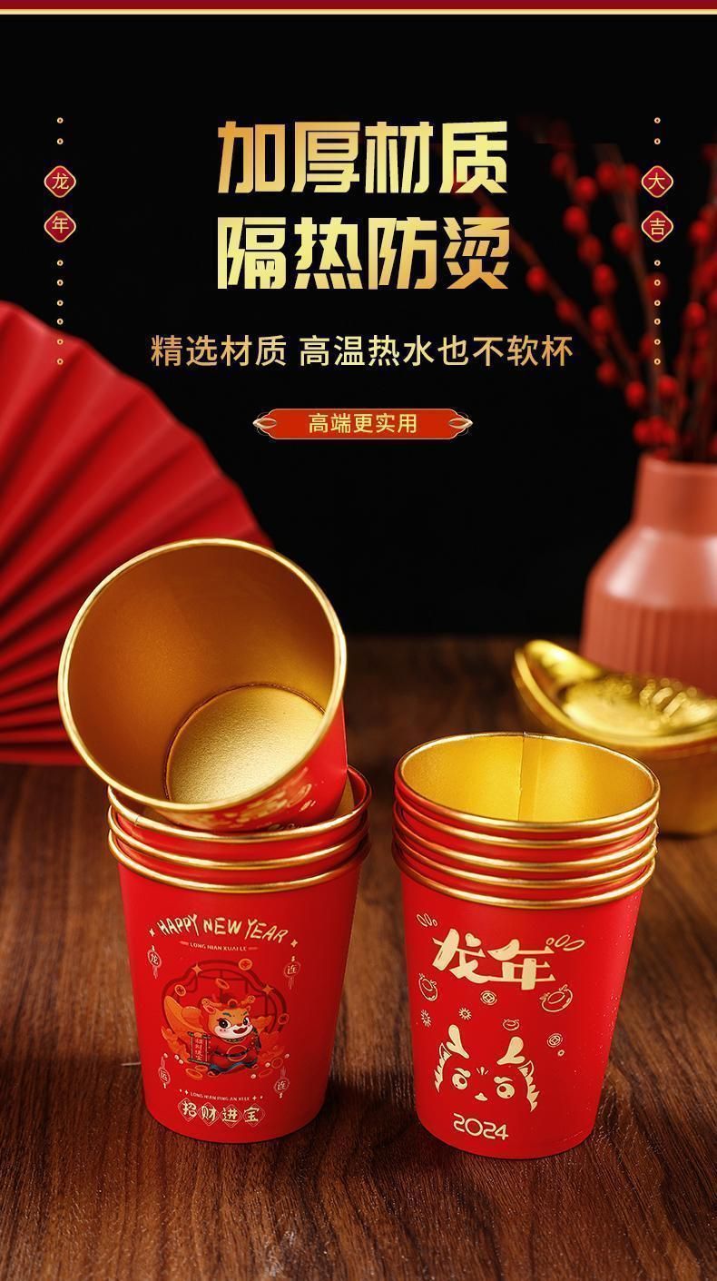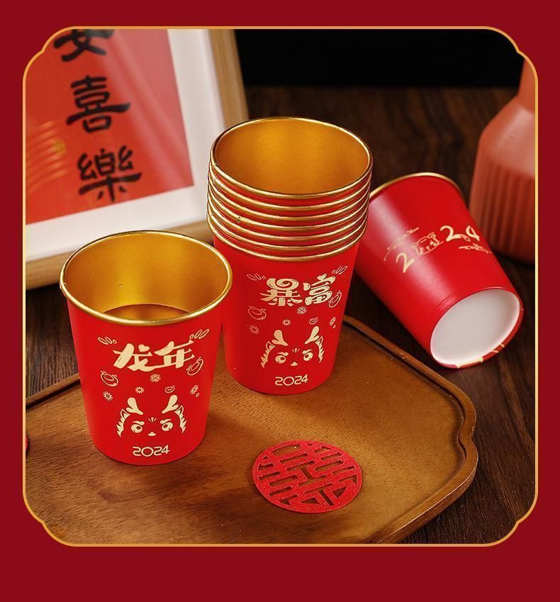 스네이크 일회용 골드 호일 종이컵의 새해 2025 봄 축제 가정용 붉은 축제 두꺼운 소스 공장 도매