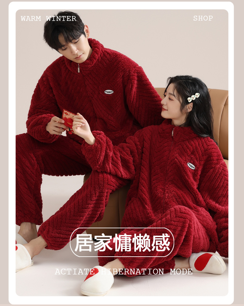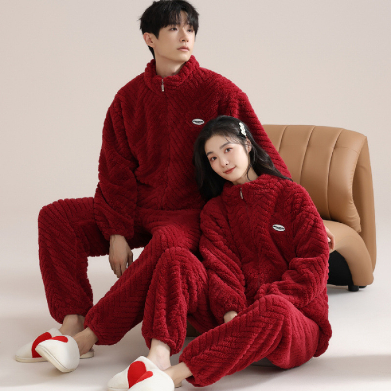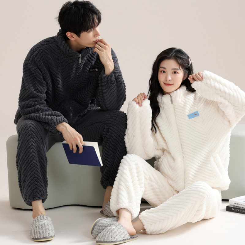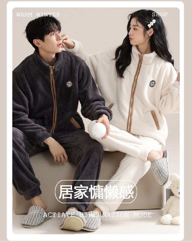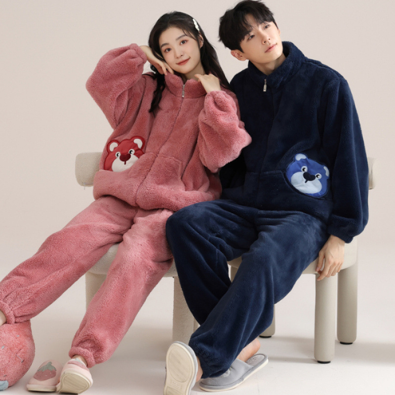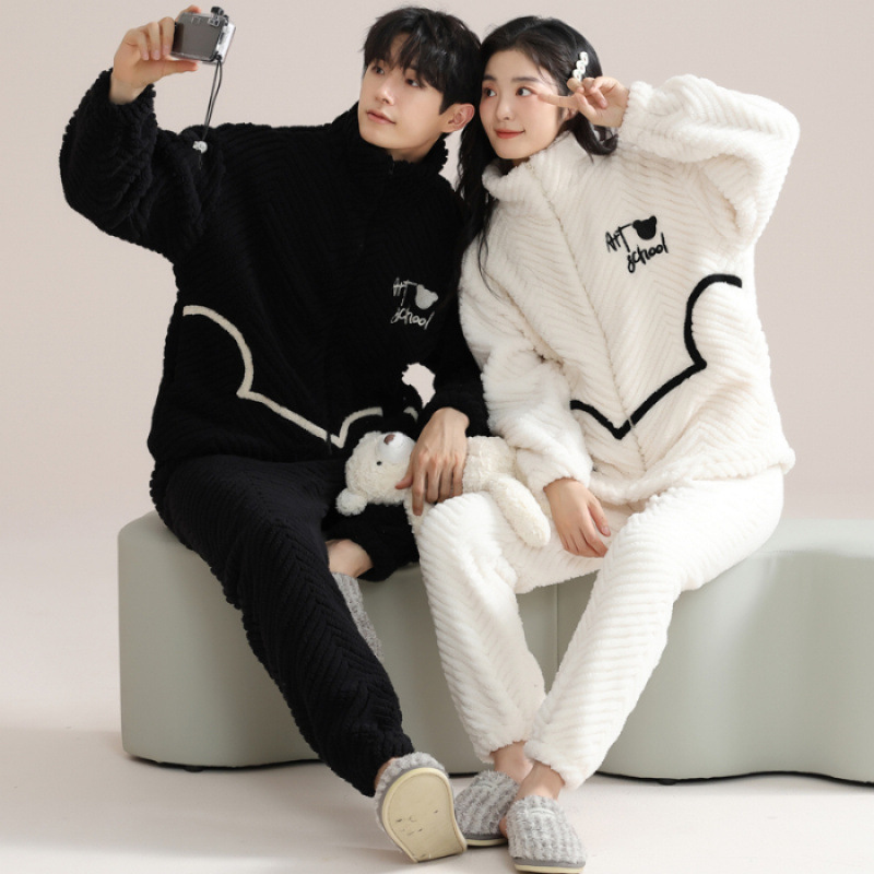 커플 잠옷 겨울 산호 양털 여성용 두꺼운 기모 따뜻한 플란넬 캐주얼 홈웨어 남성 세트스토어 가기