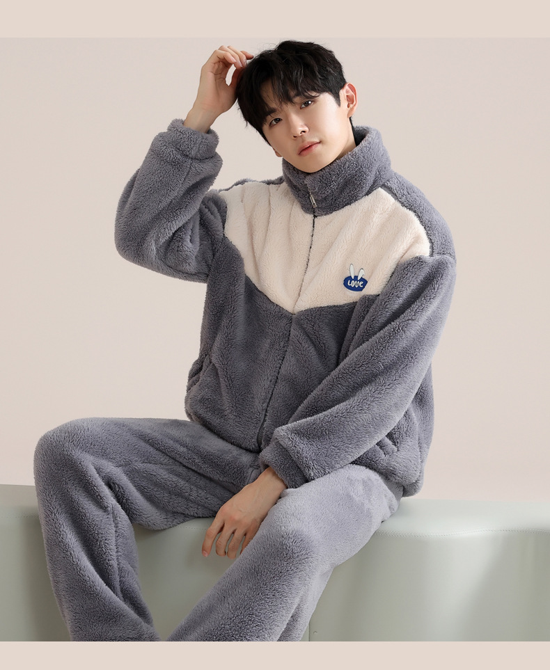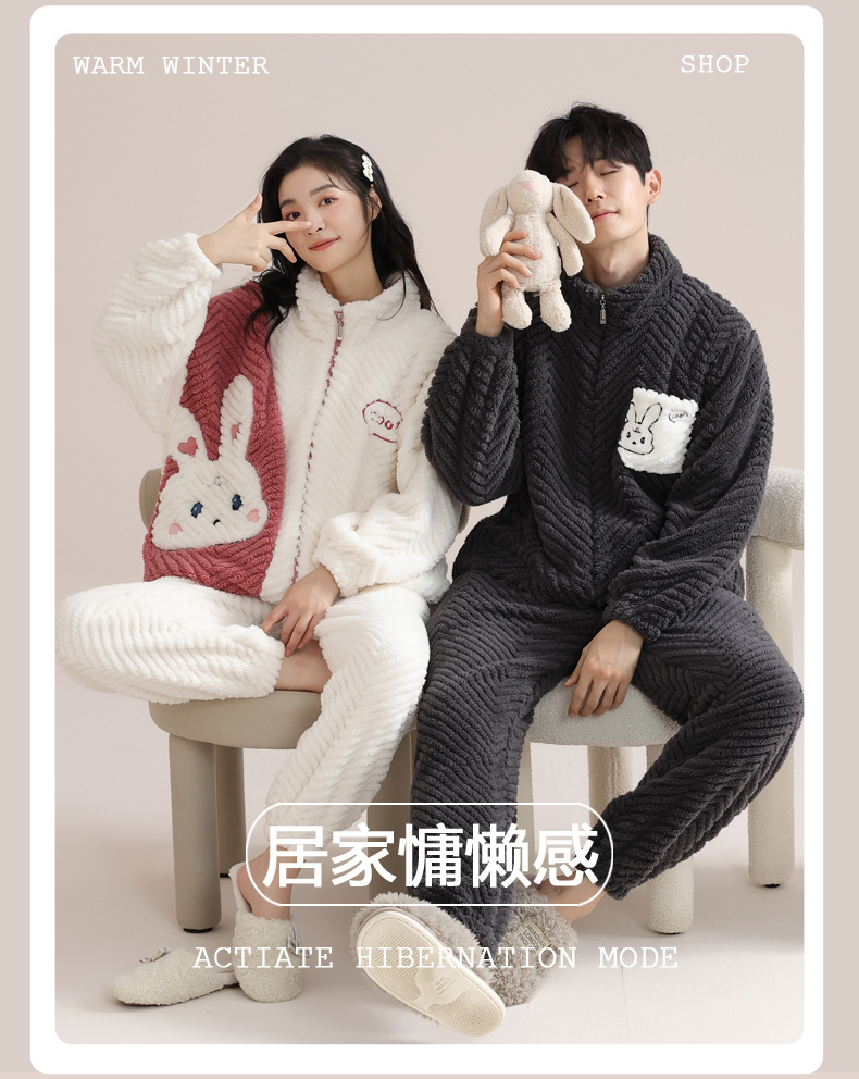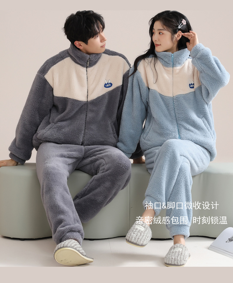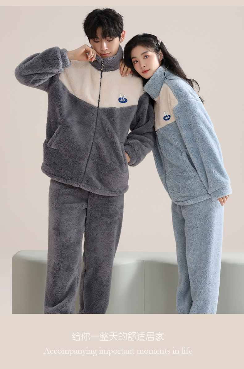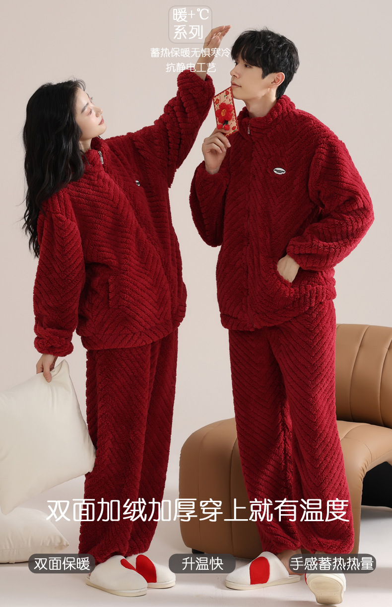 커플 잠옷 겨울 산호 양털 여성용 두꺼운 기모 따뜻한 플란넬 캐주얼 홈웨어 남성 세트스토어 가기