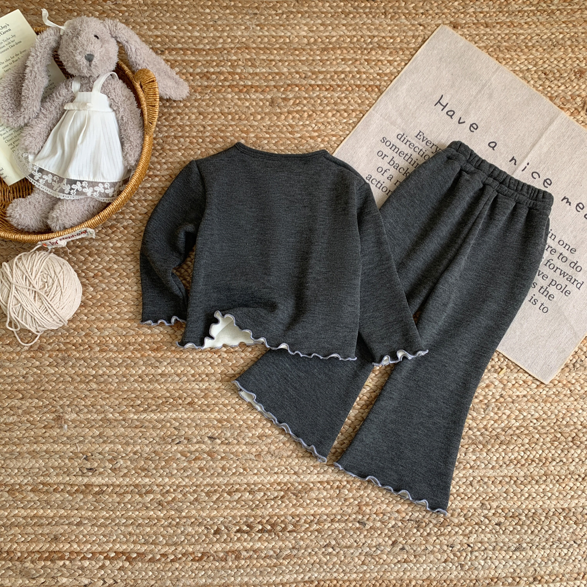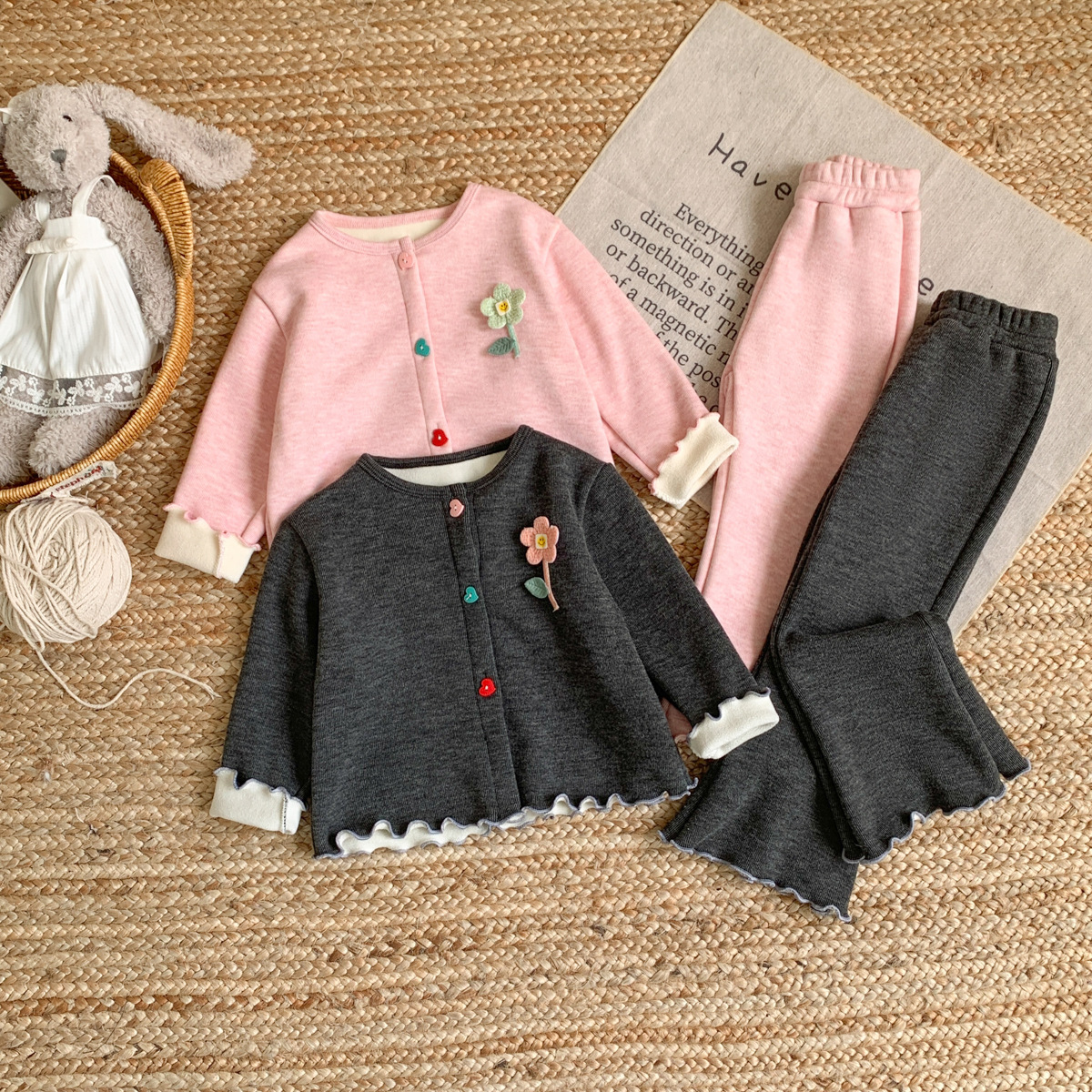 2024 새로운 기모 카디건 플레어 팬츠 세트 가을과 겨울 찹쌀 벨벳 소녀 유행 외국 스타일 무시 벨벳 투피스 세트