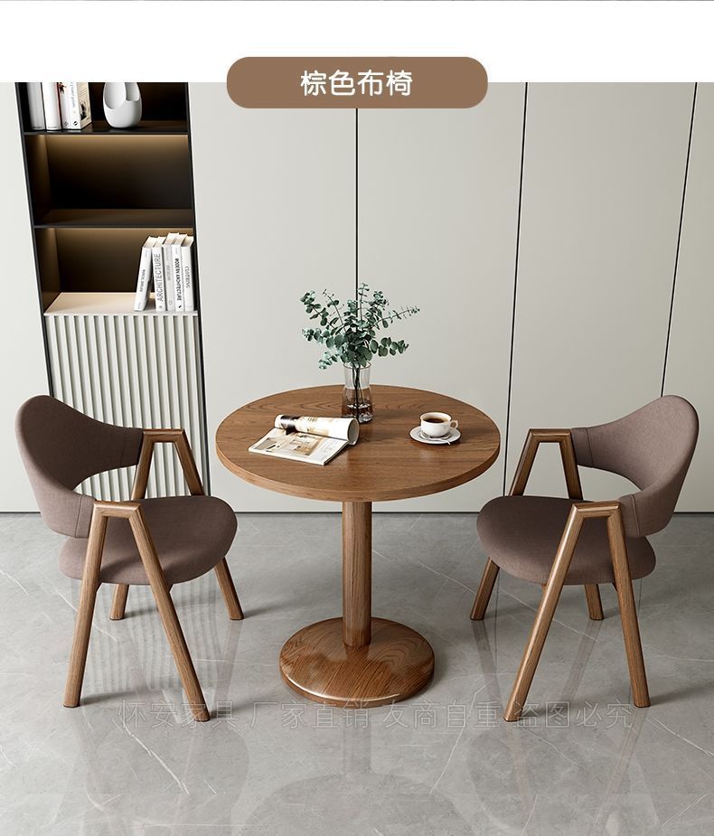 • 브라운 패브릭 의자 2개 + 우드 컬러 원형 테이블 60개