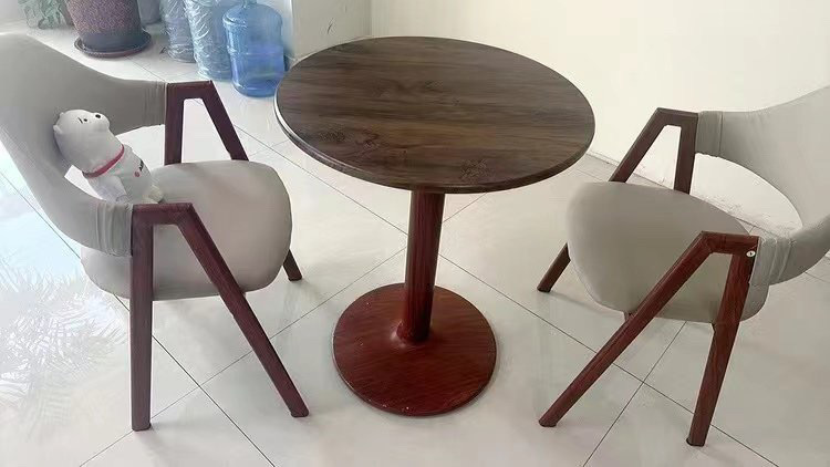 • 블랙 가죽 의자 2개 + 호두나무 원형 테이블 60개