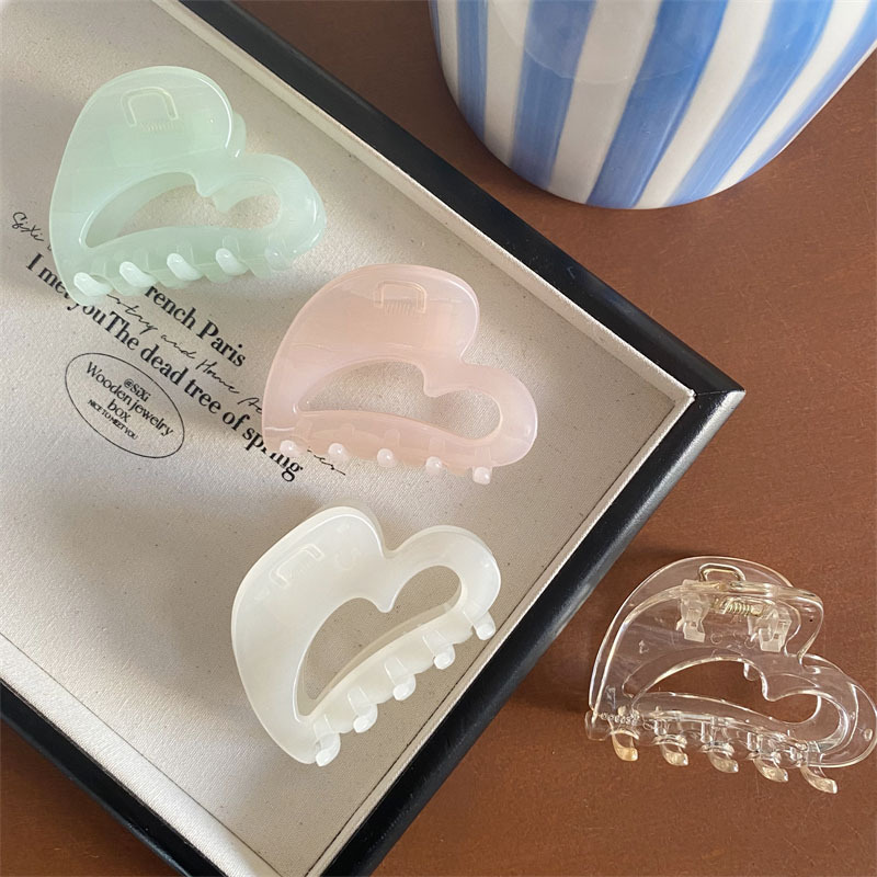 새로운 젤리 컬러 할로우 러브 그랩 클립 우아한 프랑스 투명 하프 그랩 상어 클립 프리미엄 PC 헤어 헤드웨어스토어 가기