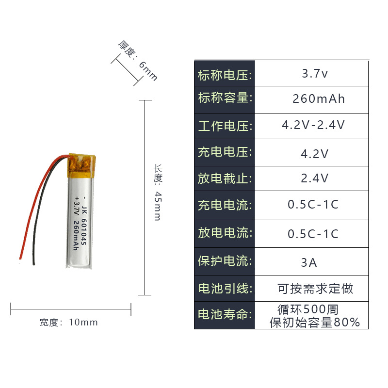 601040 폴리머 리튬 배터리 200mAhLED 자외선 충전식 배터리 살균 램프 손실 방지 장치 전기
