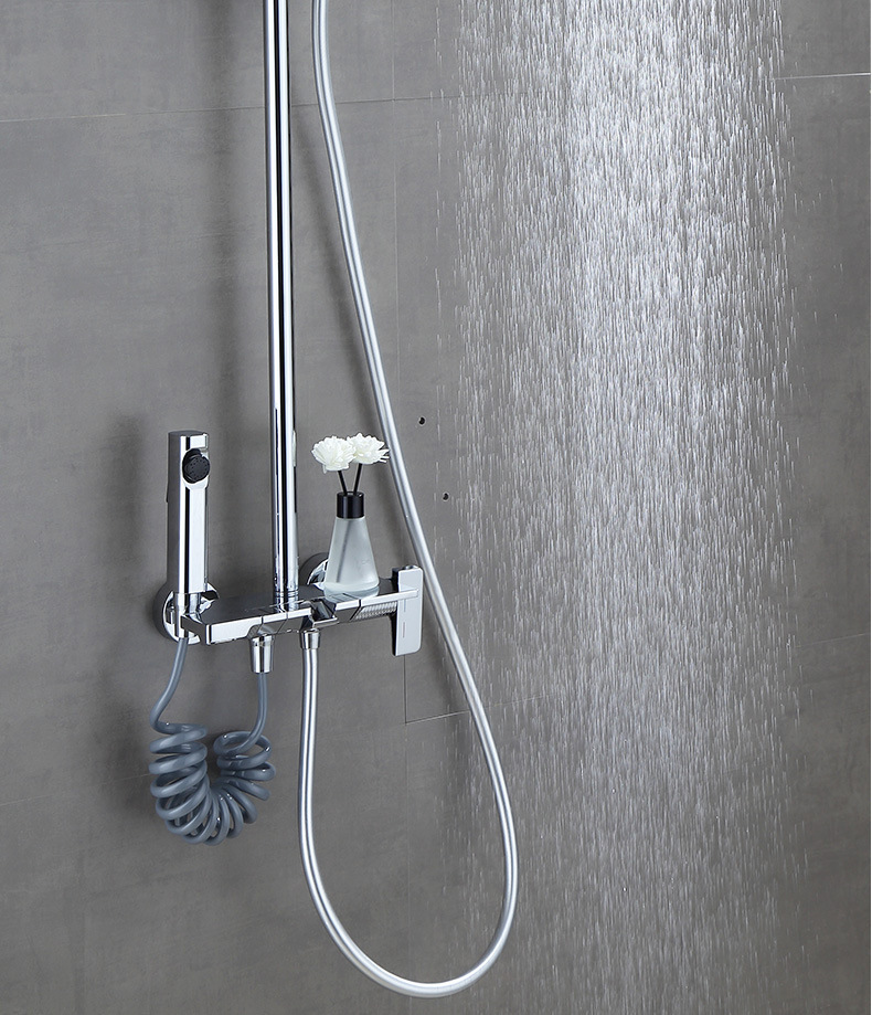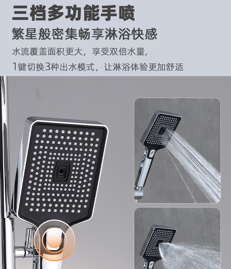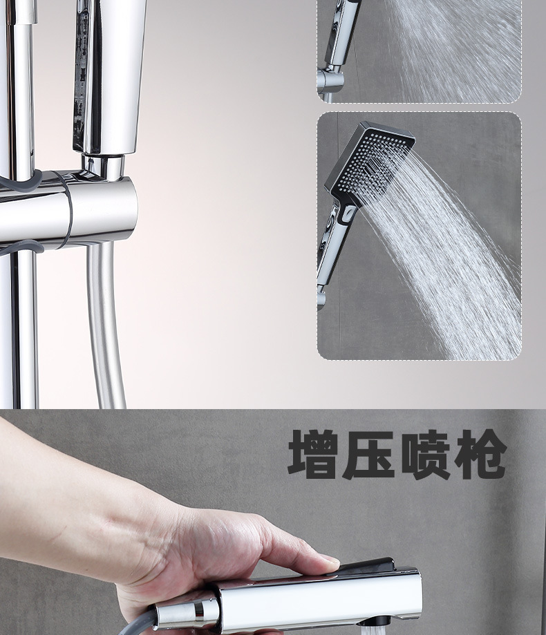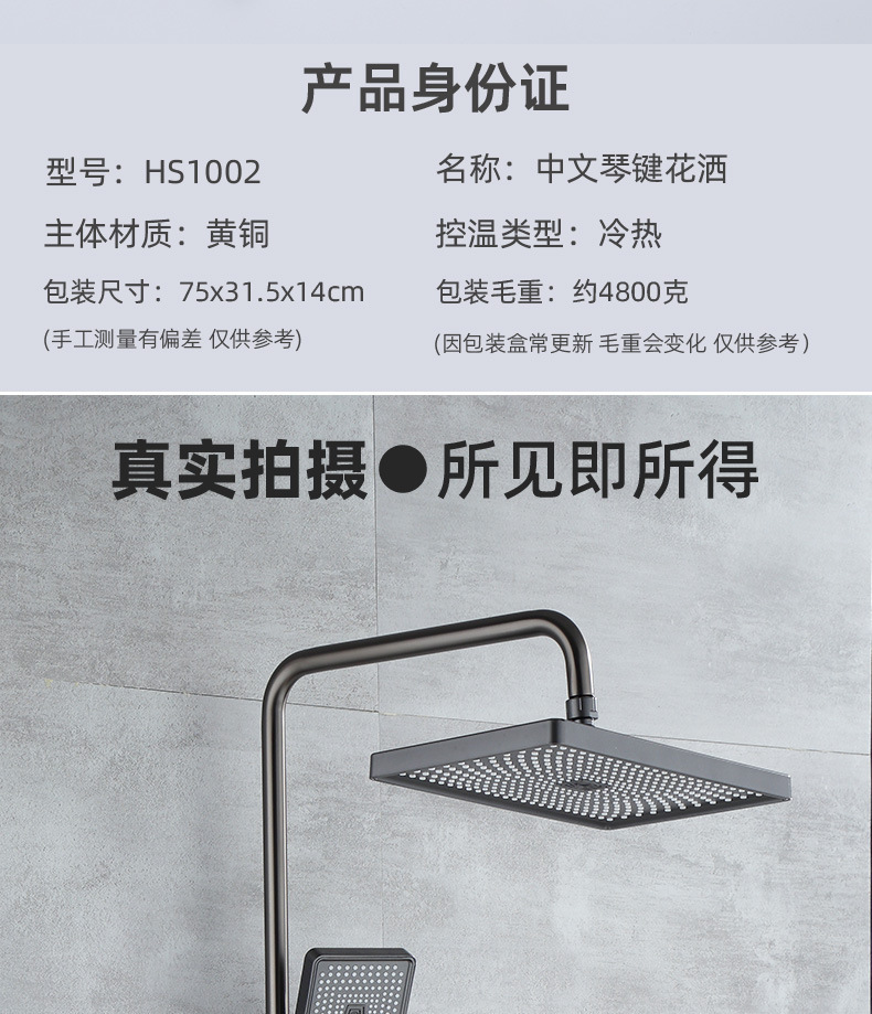 총 회색 샤워 샤워 샤워 세트 가정용 피아노 키 모든 구리 호텔 도매 샤워 욕실 비 부스터 노즐