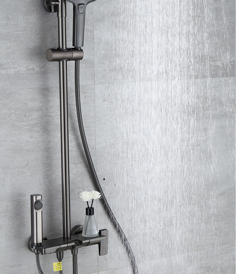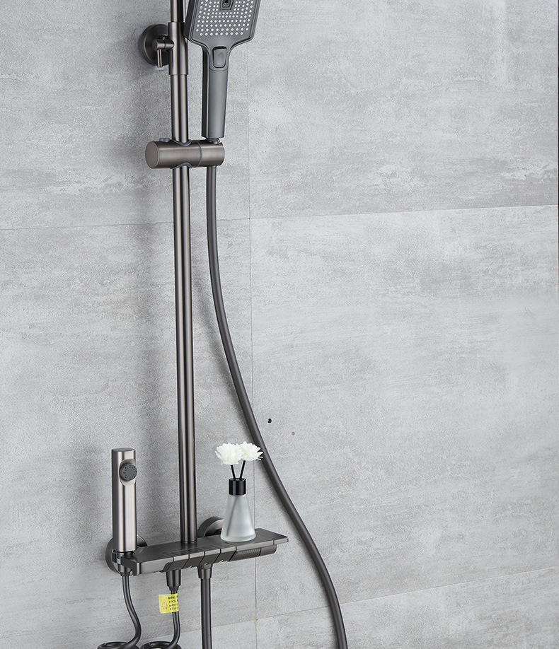 총 회색 샤워 샤워 샤워 세트 가정용 피아노 키 모든 구리 호텔 도매 샤워 욕실 비 부스터 노즐스토어 가기