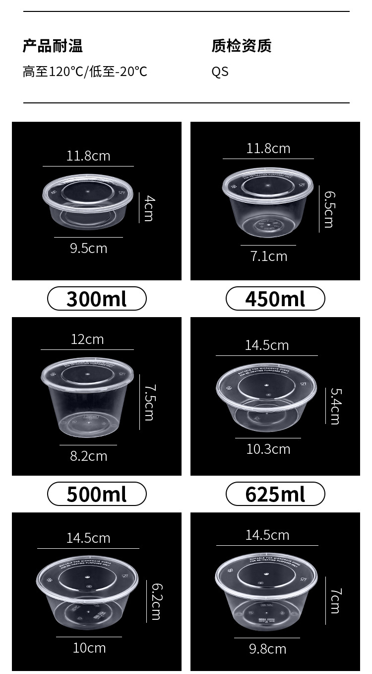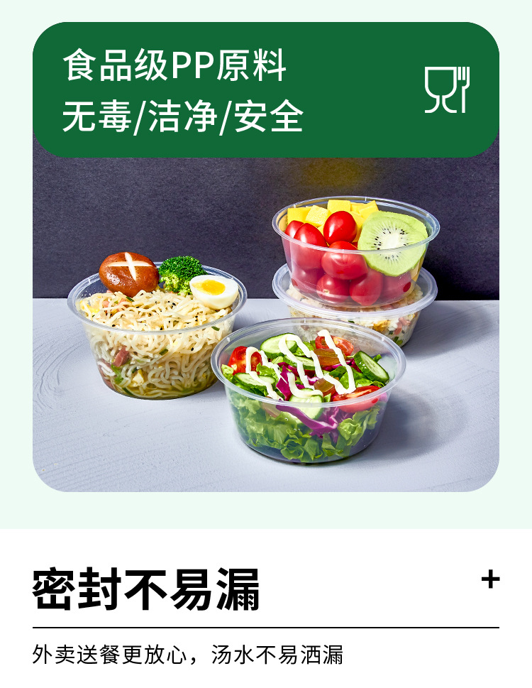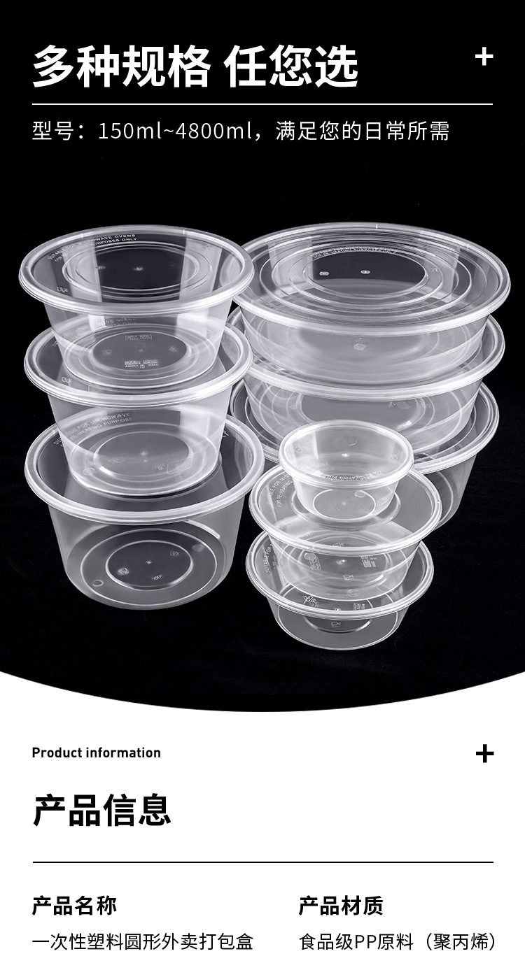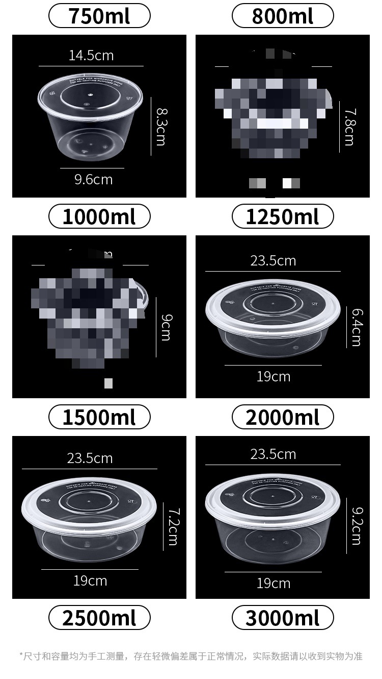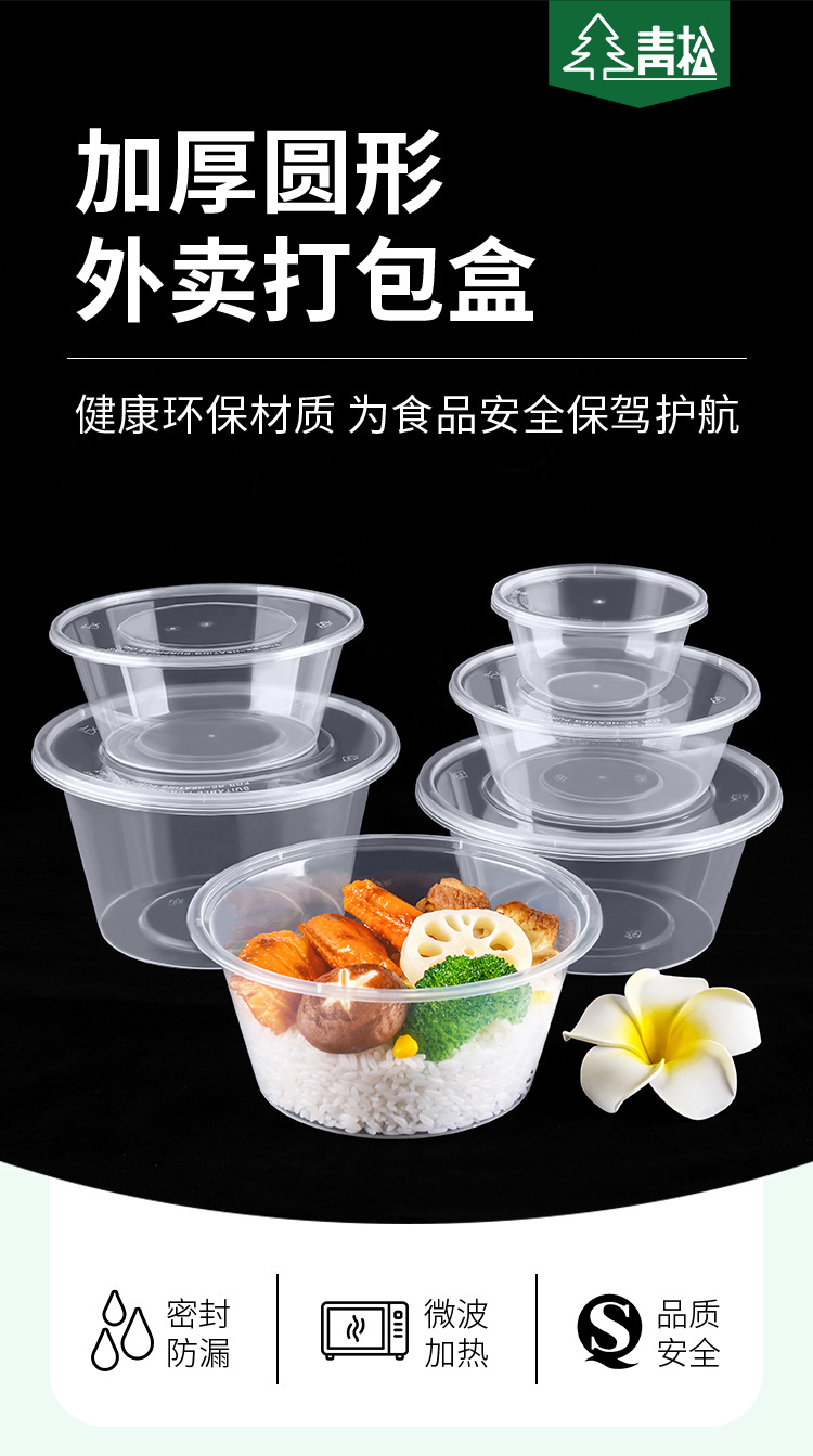 플라스틱 테이크 아웃 포장 상자 투명 스낵 상자 두껍게 도시락 새로운 1000ml 라운드 일회용 Jue Qin스토어 가기