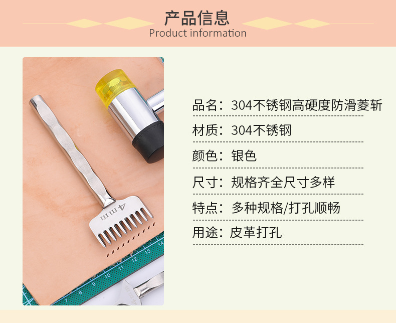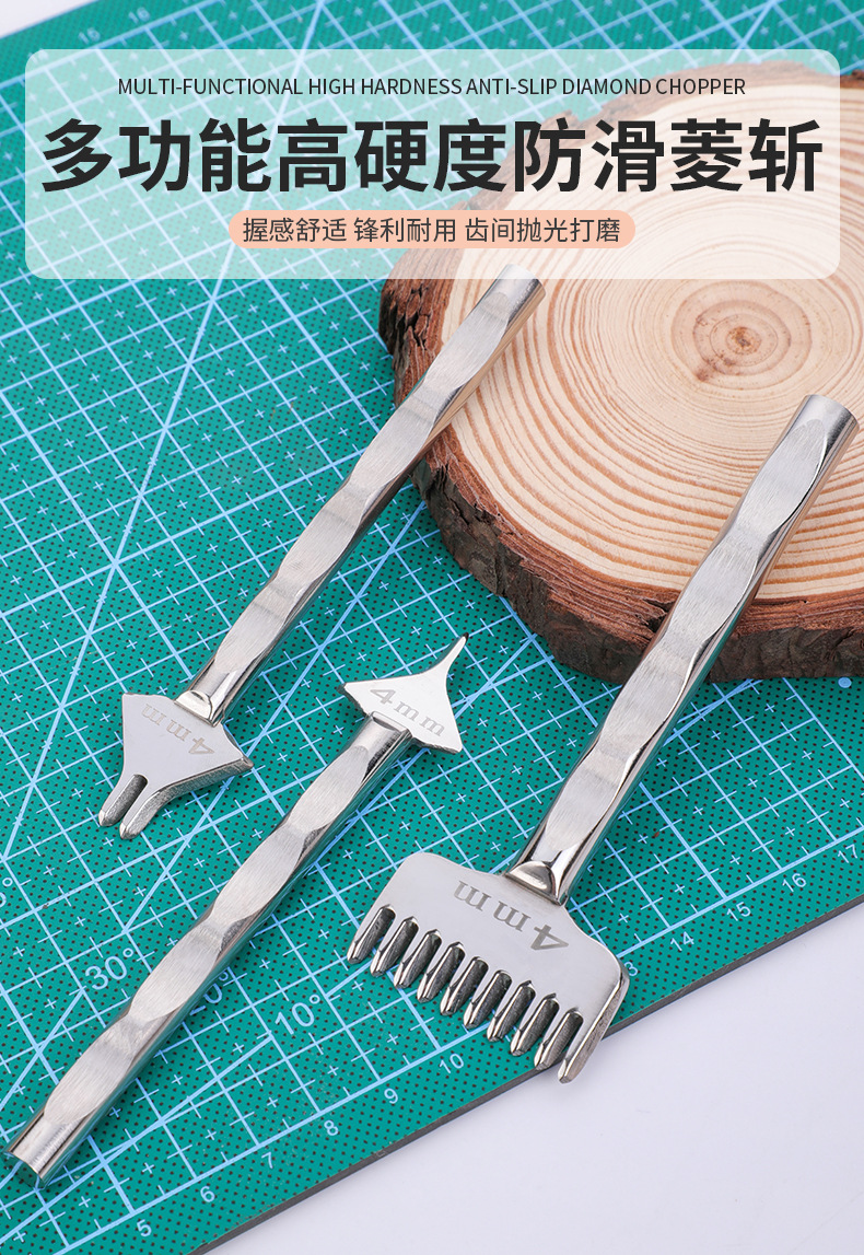 펀치 다이아몬드 찹 가죽 펀치 도구 화이트 스틸 다이아몬드 찹 미끄럼 방지 다이아몬드 찹 DIY 가죽 펀치