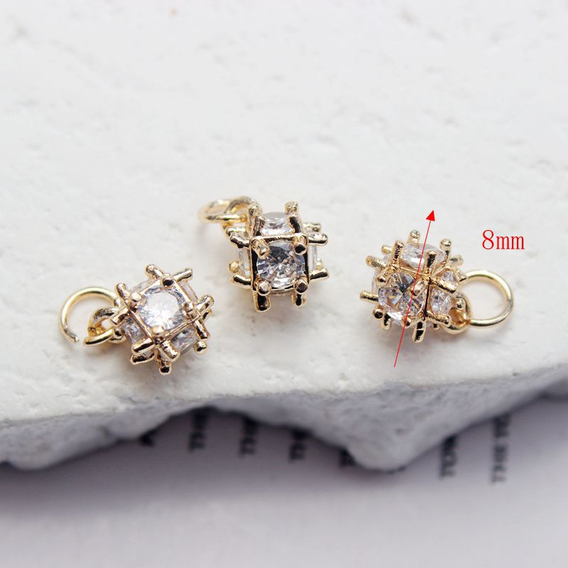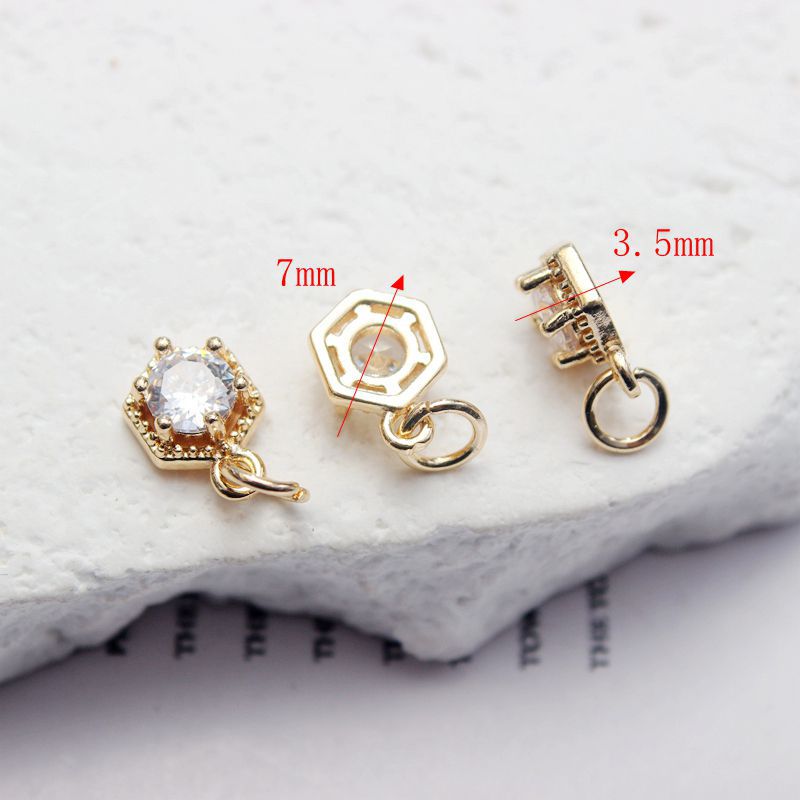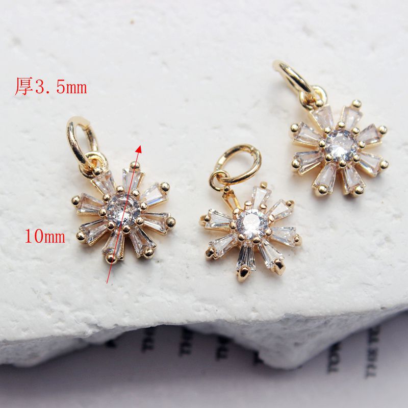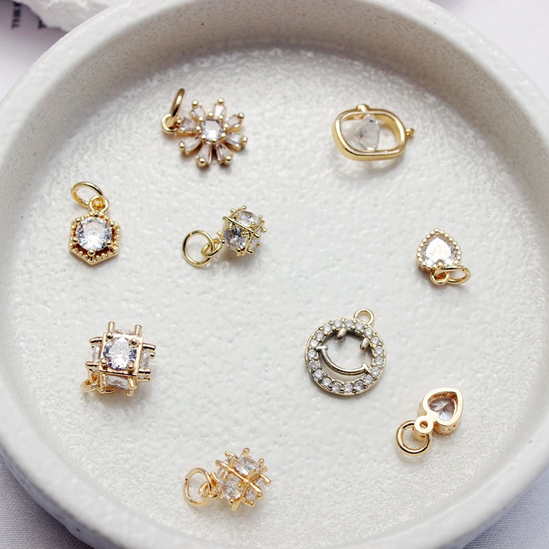 14k包金保色锆石笑脸八瓣小花爱心六边形吊坠diy饰品手链项链配件