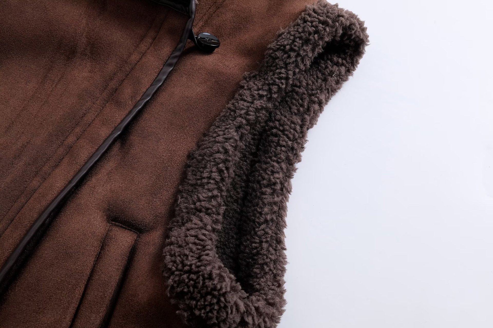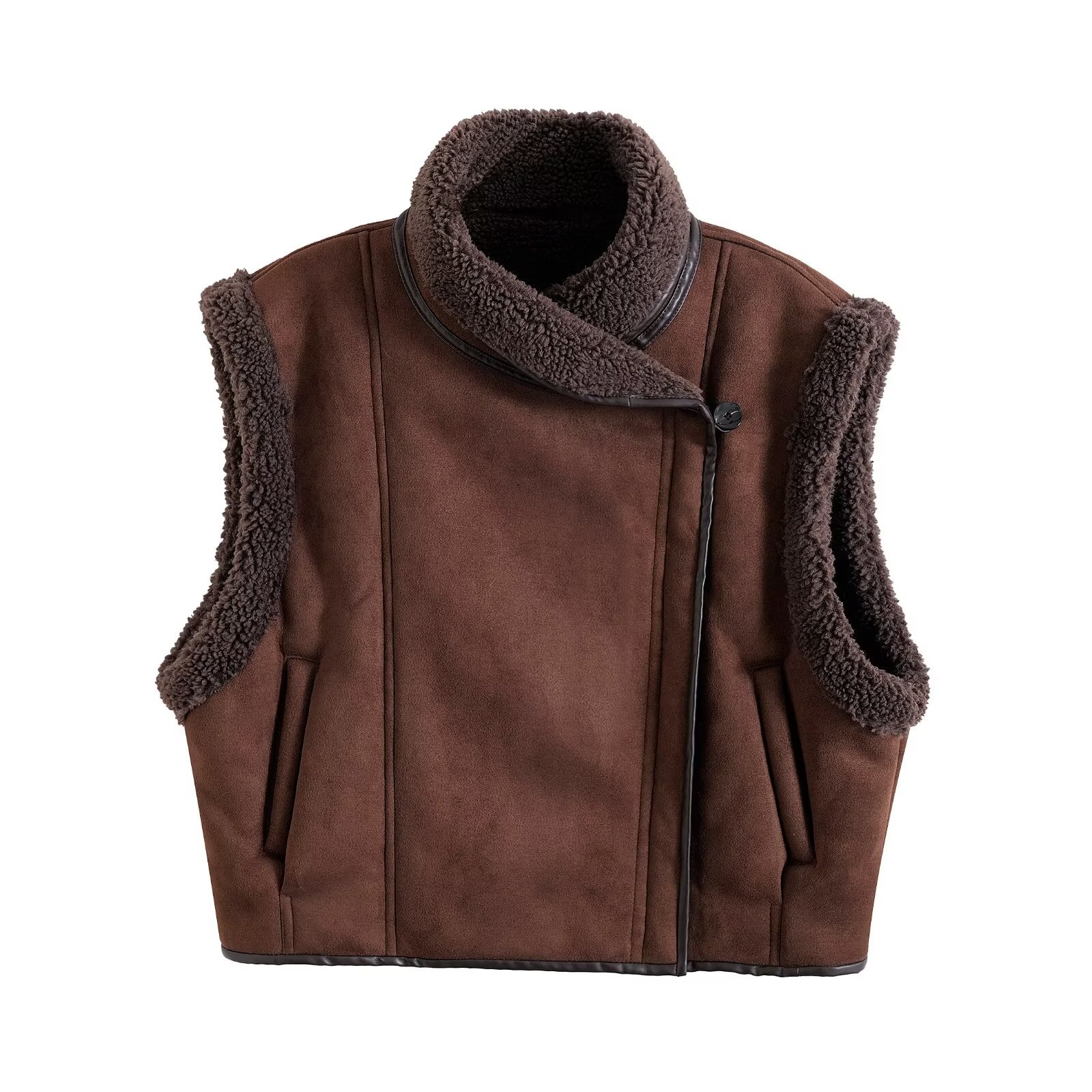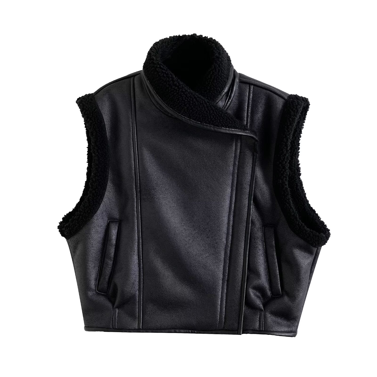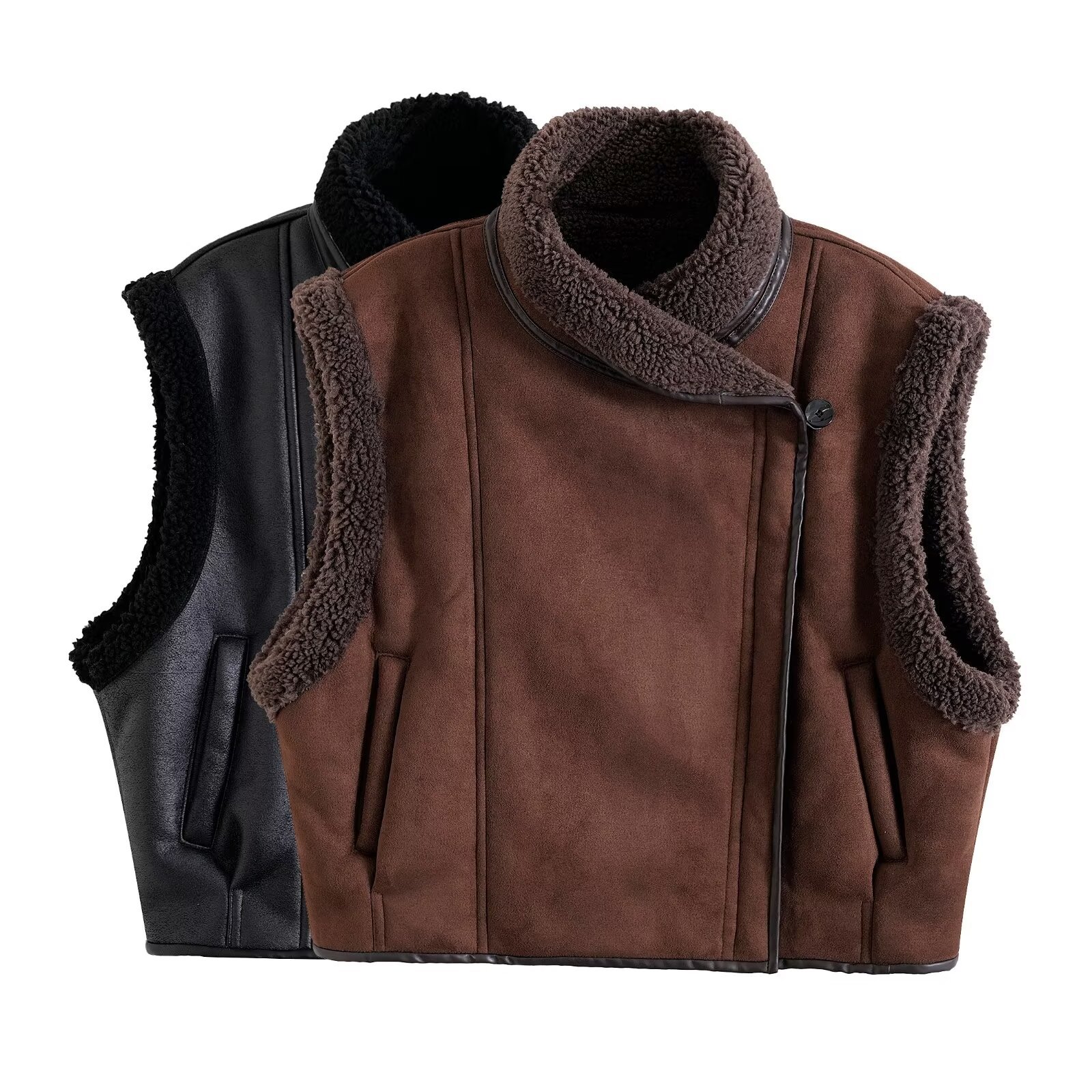 2024 겨울 신제품 유럽과 미국의 국경 여성 스웨이드 모피 원피스 조끼 재킷 w015 24262