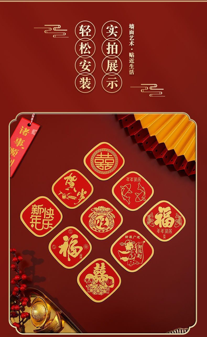 후크 새해 빨간 축복 축제 스티커 훅 펀치 프리 원활한 자기 접착 벽 강한 하중 베어링 다기능 보관스토어 가기