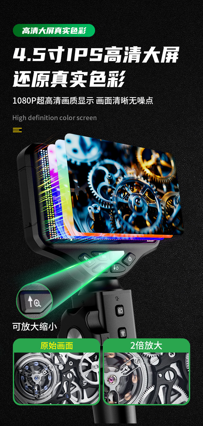 내시경 360도 회전 고온 방지 방수 및 내유성 파이프라인 자동차 유지 보수 엔진 실린더 내 카본 침전물 감지